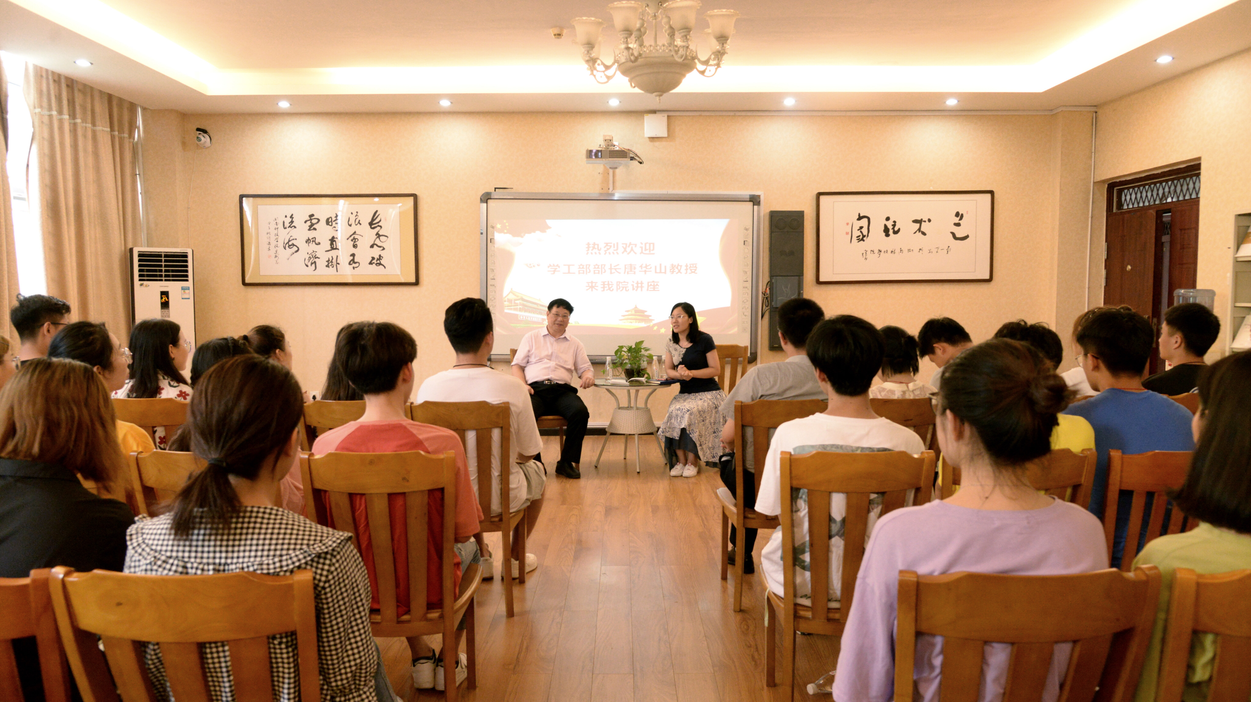 (通讯员唐忠林)6月21日下午,美术与艺术设计学院在美术楼南楼202会议室举办“党团先锋”培训交流会,学工部长唐华山教授应邀为青年学生干部做“增知识、长见识、强能力、做服务”专题讲座。学院党总支书记刘华、全体辅导员老师以及学生党员、院团委、学生会干部100余人参加,交流会由学院党总支副书记林乔军主持。