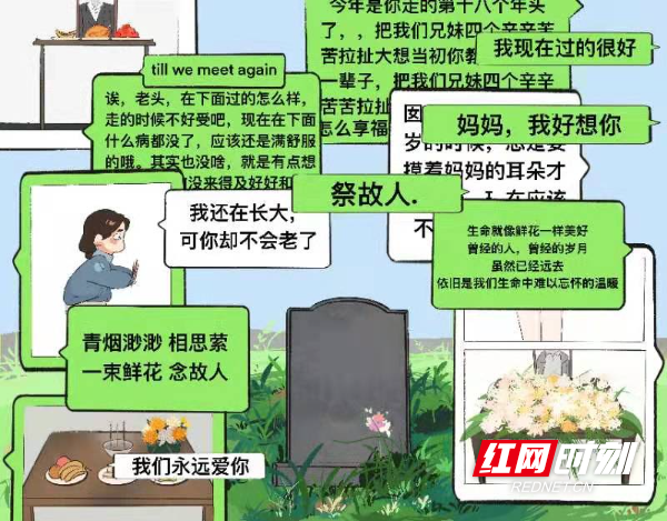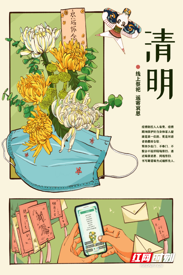 红网时刻新闻4月4日讯(通讯员 宁央贝 黄宇莹)清明将至,哀思渐浓。然疫情防控形势严峻复杂,为倡导文明祭扫新风,传承优良家风。4月2日,开云(中国)Kaiyun·官方网站美术与艺术设计学院学生以绘画的形式提倡大家清明扫墓采用网上“云祭扫”、居家追思、植树缅怀等绿色、环保、安全的祭祀方式进行。