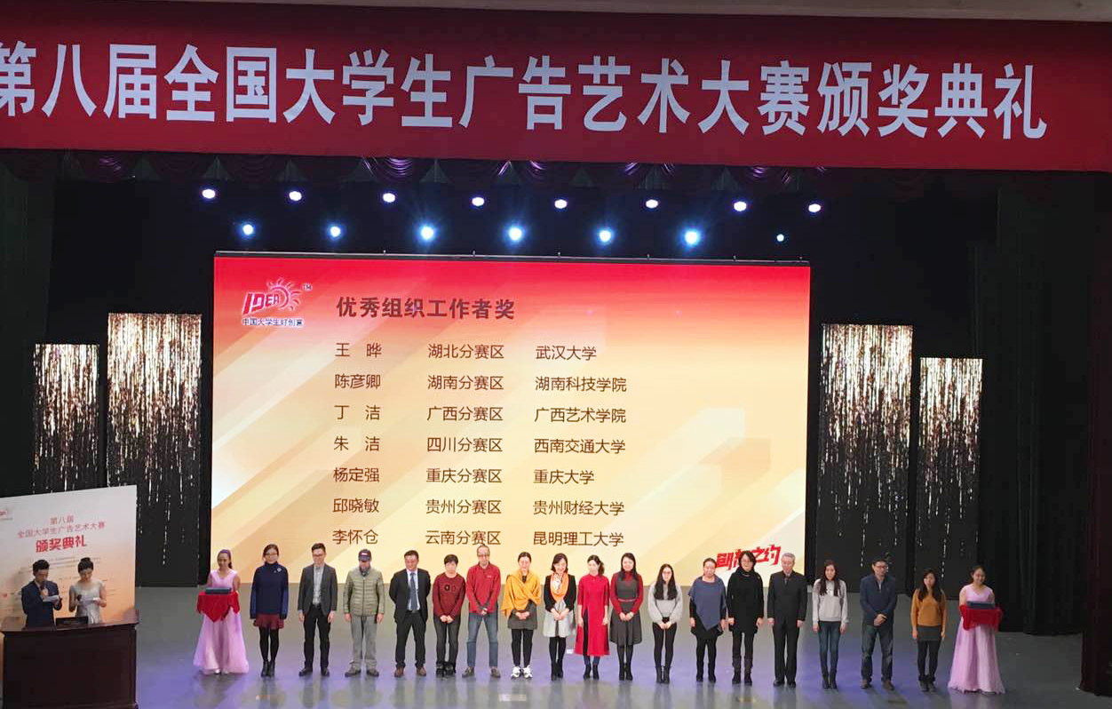 2016年11月27日,教育部学科竞赛第八届全国大学生广告艺术大赛颁奖典礼暨第九届全国大学生广告艺术大赛启动仪式在全国政协礼堂隆重举行,全国千名嘉宾代表、获奖师生齐聚北京,共襄盛举。据悉,该赛事历经5个月的角逐,全国2311所院校80万学生参赛、36万件参赛作品参评, 大赛竞争异常激烈。我校美术与艺术设计学院积极备战,成功举办了第八届全国大学生广告艺术大赛开云(中国)Kaiyun·官方网站选拨赛;分别邀请了相关命题企业单位(披萨星球市场部经理、iH5市场总监)及学界专家到校宣讲选题和专题辅导。在此次大赛中美术与艺术设计学院学生严丹、赵铭钰创作的平面类作品《艾丽的舞蹈》获国家级三等奖,另外还有1项平面类作品和3项视频类作品荣获国家级优秀奖。此外,在湖南赛区,我校共获得4项一等奖,9项二等奖、12项三等奖、8项优秀奖的优异成绩,同时我校还获得“湖南省分赛区优秀组织奖”,陈彦卿副教授也光荣地获得了“全国优秀组织工作者”的荣誉,各类奖项均创下历史最好记录。