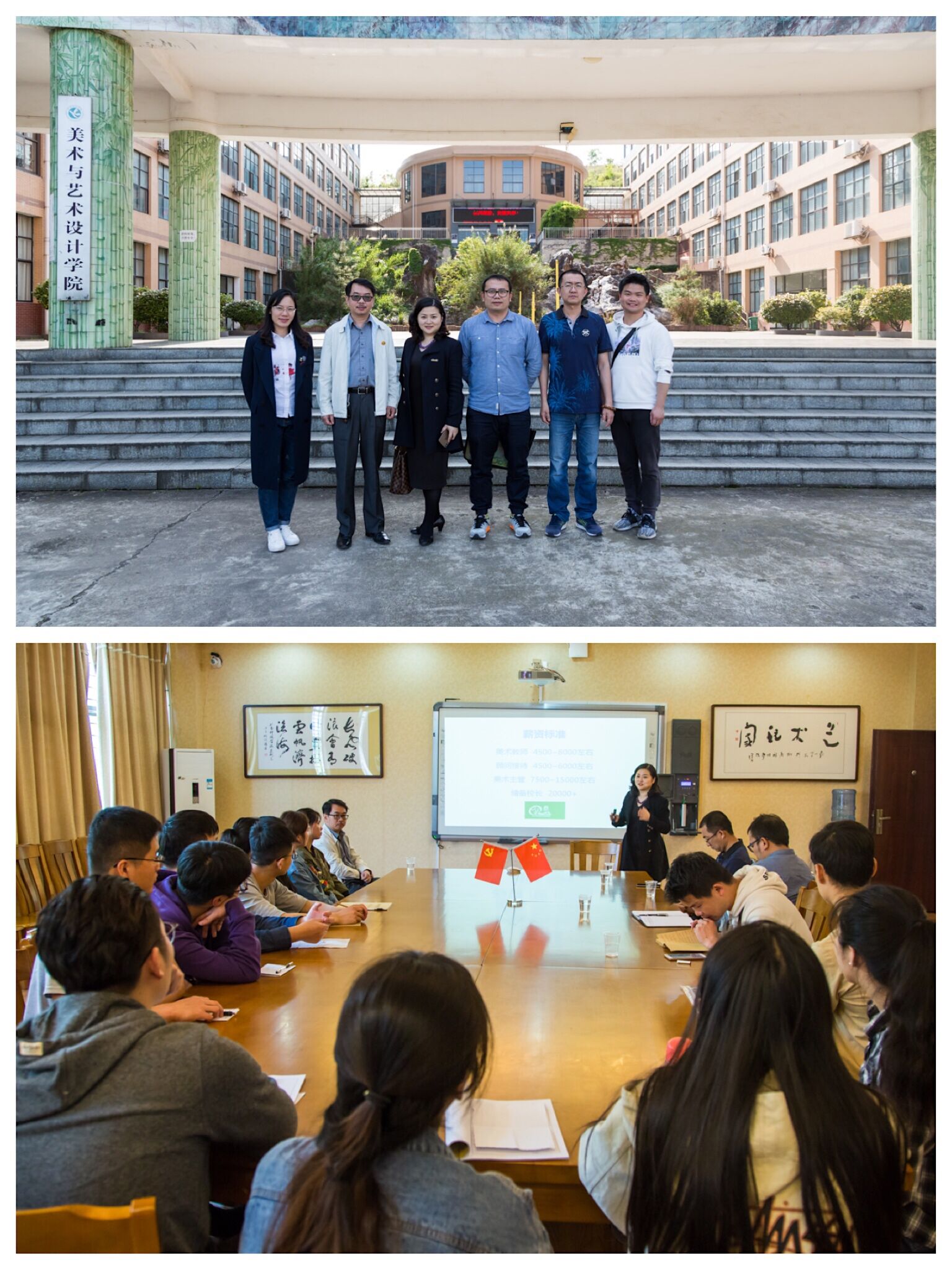 本网讯 4月17日广州冏艺教育有限公司张艳梅一行三人来院交流,交流会在美术楼202会议室举行,张建利院长主持。