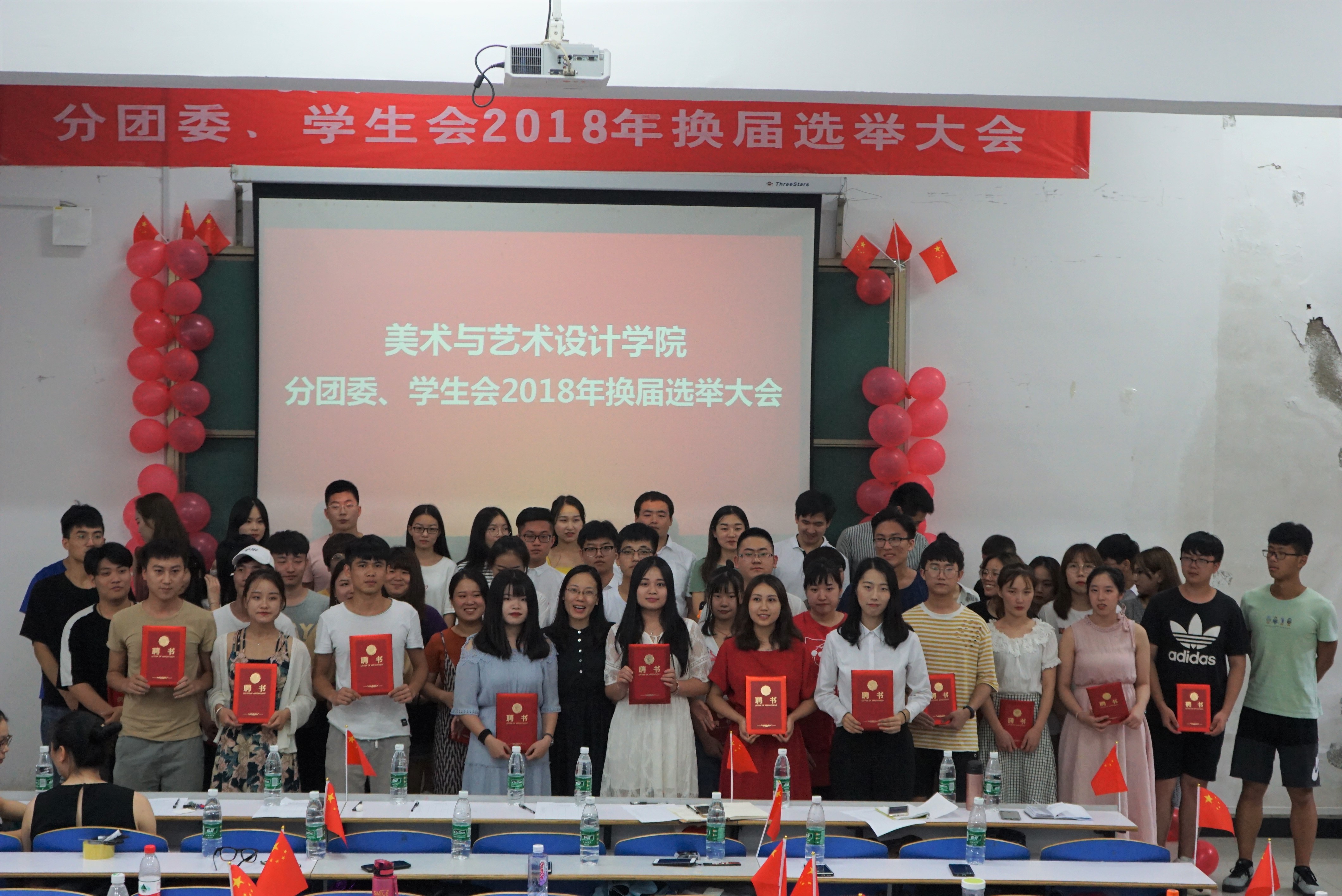 (通讯员:林怡)2018年6月19日,美术与艺术设计学院在美术楼北102教室召开了2018年分团委、学生会干部换届选举大会。该院党总支副书记刘华老师、学院学工办主任欧阳智超老师、各年级辅导员老师以及各班级学生代表出席了大会。