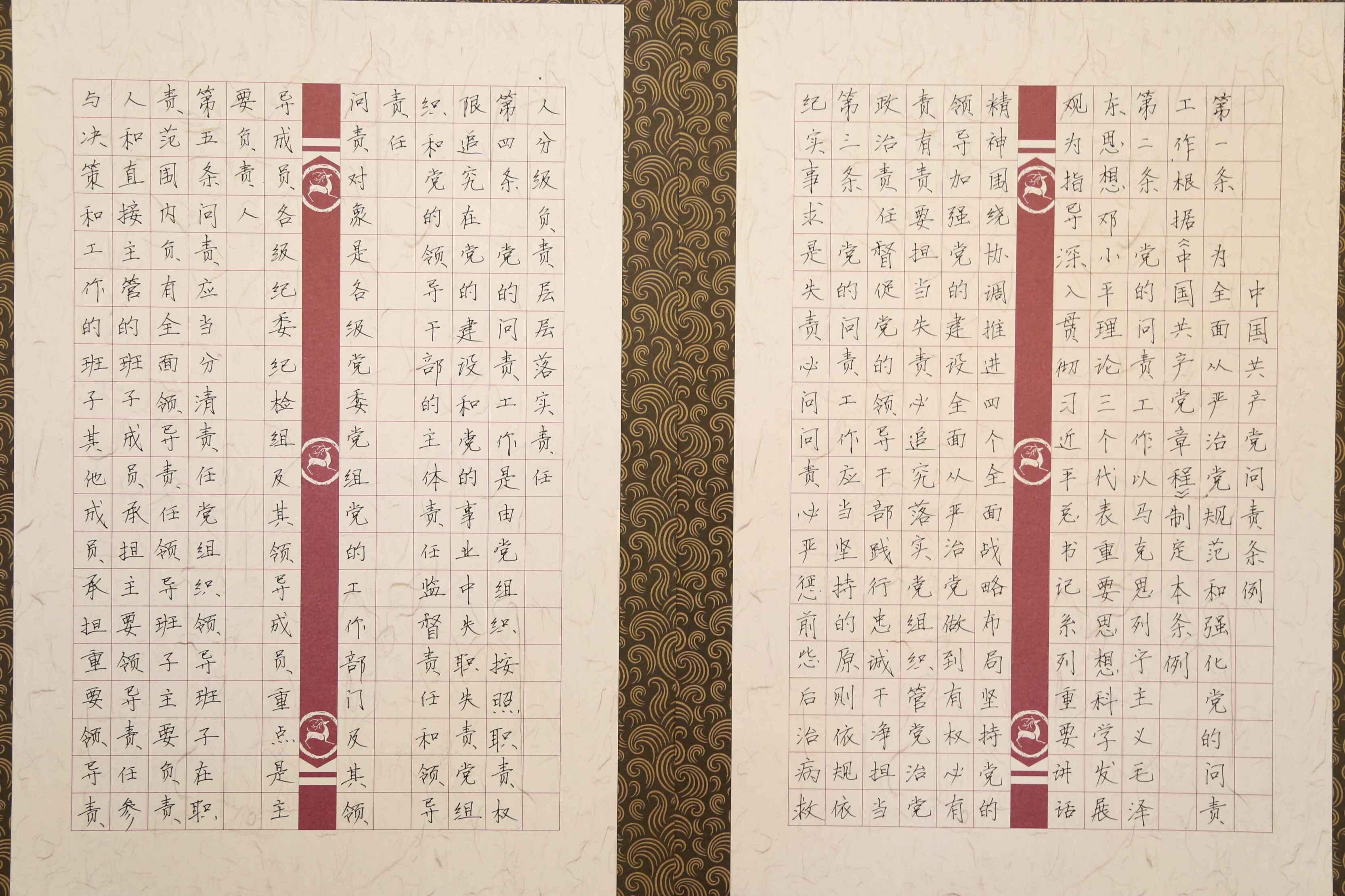 本次硬笔书法大赛,不仅营造了积极向上、清新高雅、健康文明的校园文化氛围,为硬笔书法交流奠定了基础,同时加深了教师党员们对《中国共产党问责条例》的认识和理解。