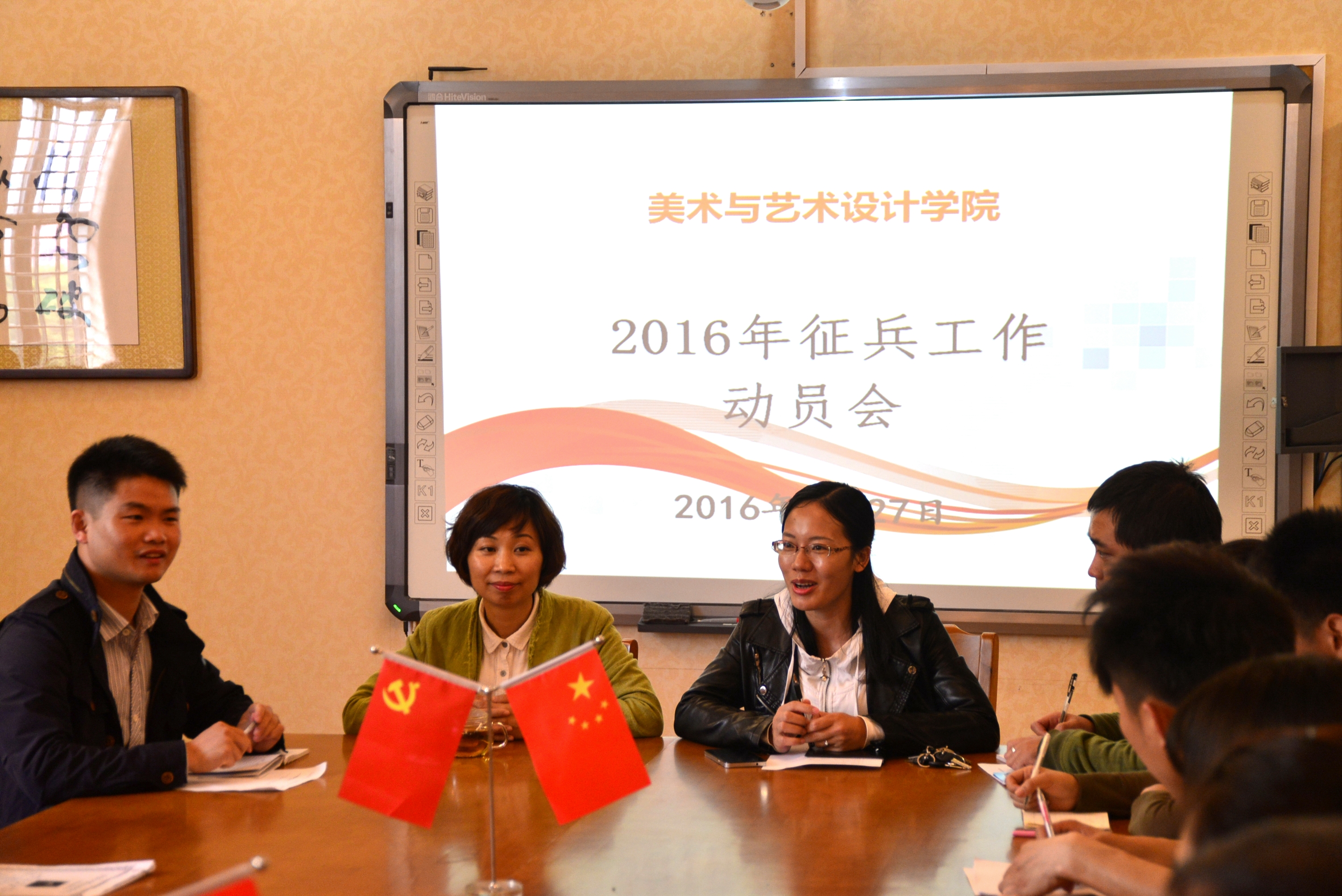 (通讯员张徐源 唐忠林)4月27日上午,美术与艺术设计学院召开2016年征兵工作会议。会议由党总支副书记刘华主持,我院征兵工作专干、毕业班辅导员和毕业生代表参加。党总支书记谢筱冬出席。