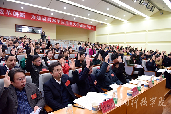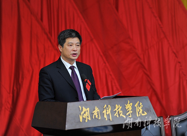 陈弘发表讲话。他指出,为确保我校第三次党员代表大会开成团结、圆满、成功的大会,为学校“十三五”发展注入强大动力,他代表学校党委向与会全体代表提出四点要求:一是要充分认识本次党代会召开的重大意义。本次党代会是在“十二五”、“十三五”两个五年计划交替、国家对地方高等院校实施向应用型大学转型的重大战略部署的重要节点上召开的一次重大会议,会议将对学校未来五年发展战略路径、战略目标、战略方针作出部署,对学校未来发展具有长远的、重大的意义。二是全体与会代表要遵守政治纪律,讲大局、讲政治。本次党代会是对我校凝聚力和战斗力以及学风、校风的一次全面检验,全体与会代表务必要遵守政治纪律,增强全局意识,坚决贯彻落实省委对召开本次大会的各项要求。三是各位代表要以主人翁的姿态积极讨论好党委工作报告和纪委工作报告,为学校“十三五”发展蓝图建言献策,群策群力把学校办好。四是各相关职能部门一定要凝心聚力,做好党代会各项工作,确保会议正常有序召开。他要求各位代表一定要以饱满的精神状态、良好的精神面貌,以高度的政治责任感和时代使命感,严肃认真地履行好自己应尽的职责,严守会议各项纪律,共同把党代会开成民主团结、求真务实、鼓舞人心、催人奋进的大会。