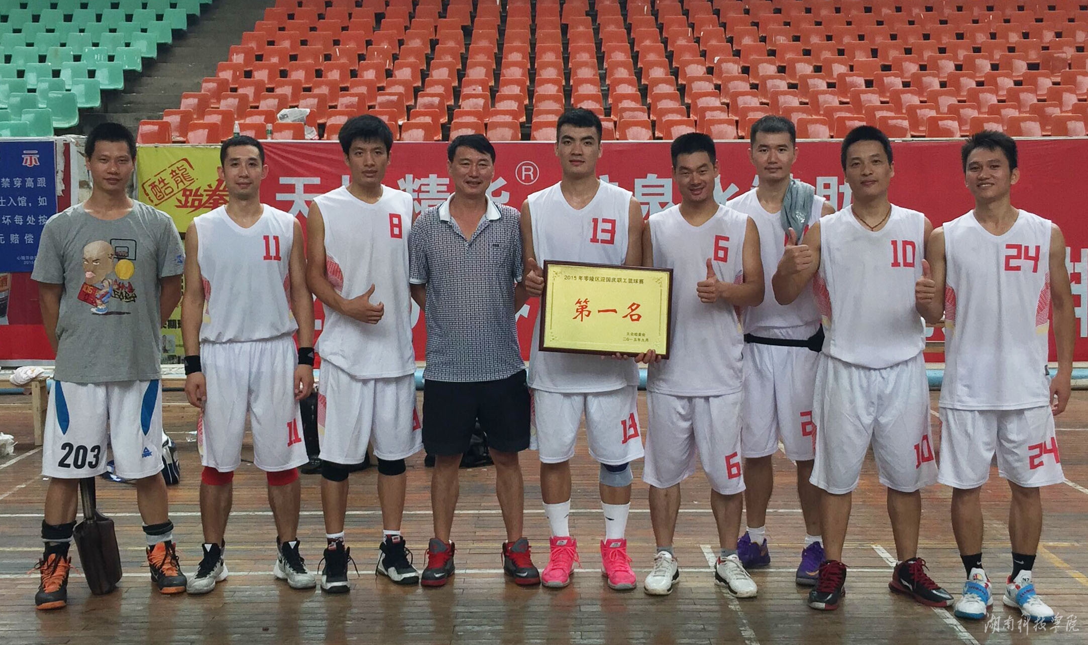 本网讯 9月30日,零陵区2015年“迎国庆”职工男子篮球赛在区体育馆落幕,我校教工男子篮球队斩获冠军。