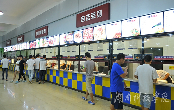 9月7日,学校开学第一天,桃园食堂装修后重新开业。食堂大门电子屏上打出了欢迎广大师生就餐的标语。