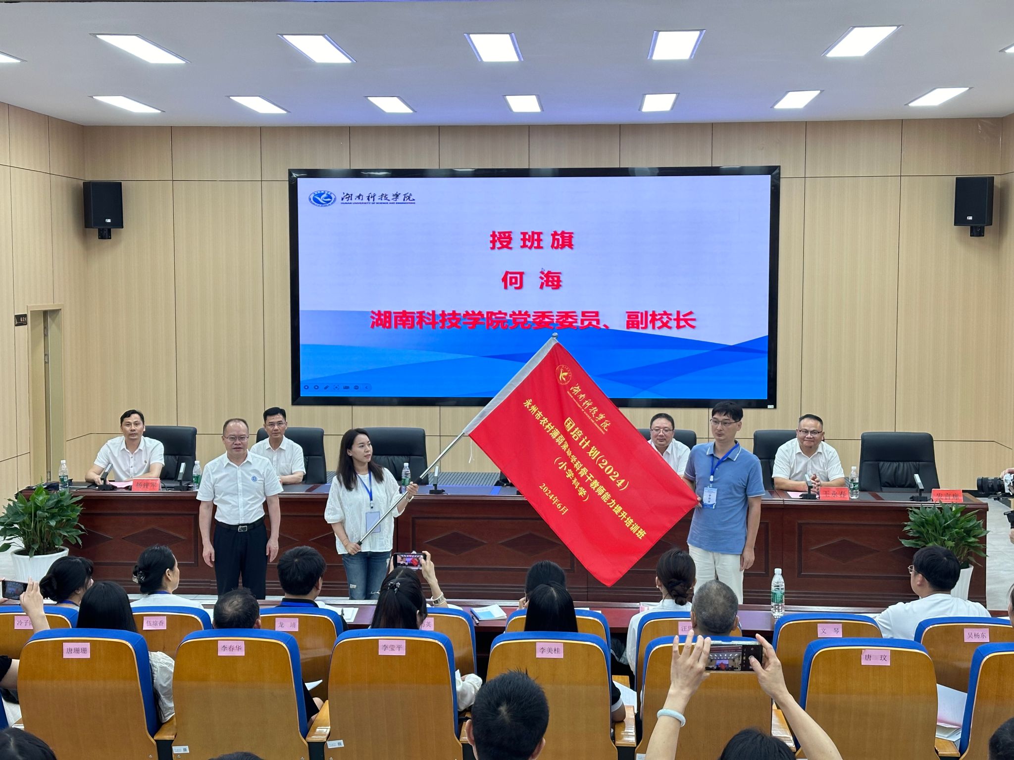 本网讯(通讯员 曹湖云 江鸿湖 唐卉婉)6月17日上午,2024年“国培计划”永州市农村薄弱紧缺学科骨干教师能力提升培训班(小学科学)在我校开班。党委委员、副校长何海,永州市教育局党组副书记、副局长张荣华,永州市教师发展中心主任唐作明,正高级教师、第十四届全国人大代表胡国柱,以及来自永州市各县区的80名小学科学教师参加了开班典礼。