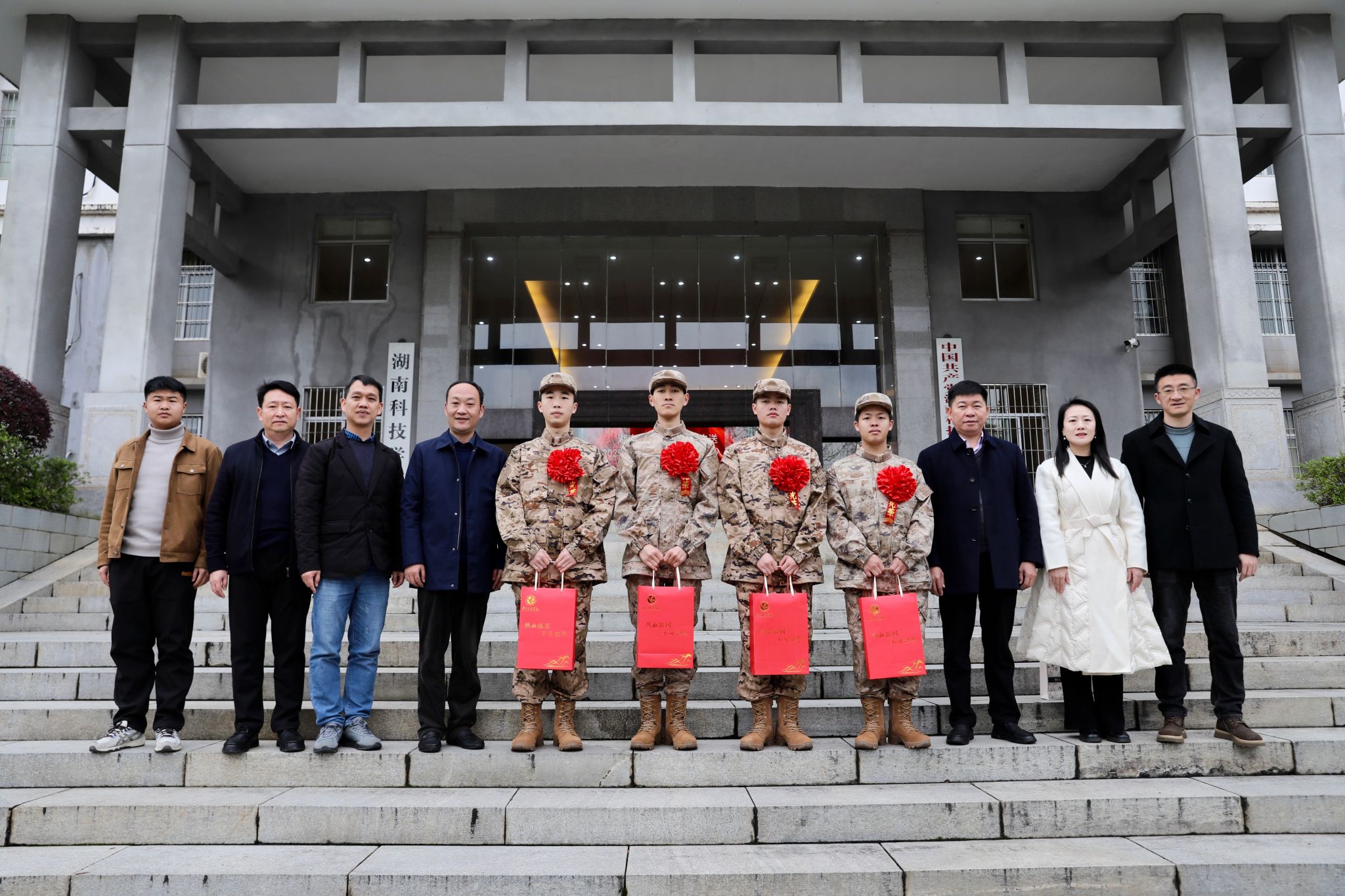 杨涛代表学校向积极应征入伍的4名新兵表示热烈祝贺,并为即将入伍的同学送上殷切寄语。他对入伍新兵提出三点期望与建议:一是要筑牢理想信念,提高政治素质,严守纪律,听从指挥,坚定不移听党话、跟党走;二是要尽快转变角色,积极适应部队生活,坚决服从管理,熟练掌握军事技能、安心服役;三是要报效伟大祖国,把满腔热情化为报国之志,以实际行动建功军营,用优异的表现为父母增光、为学校添彩!