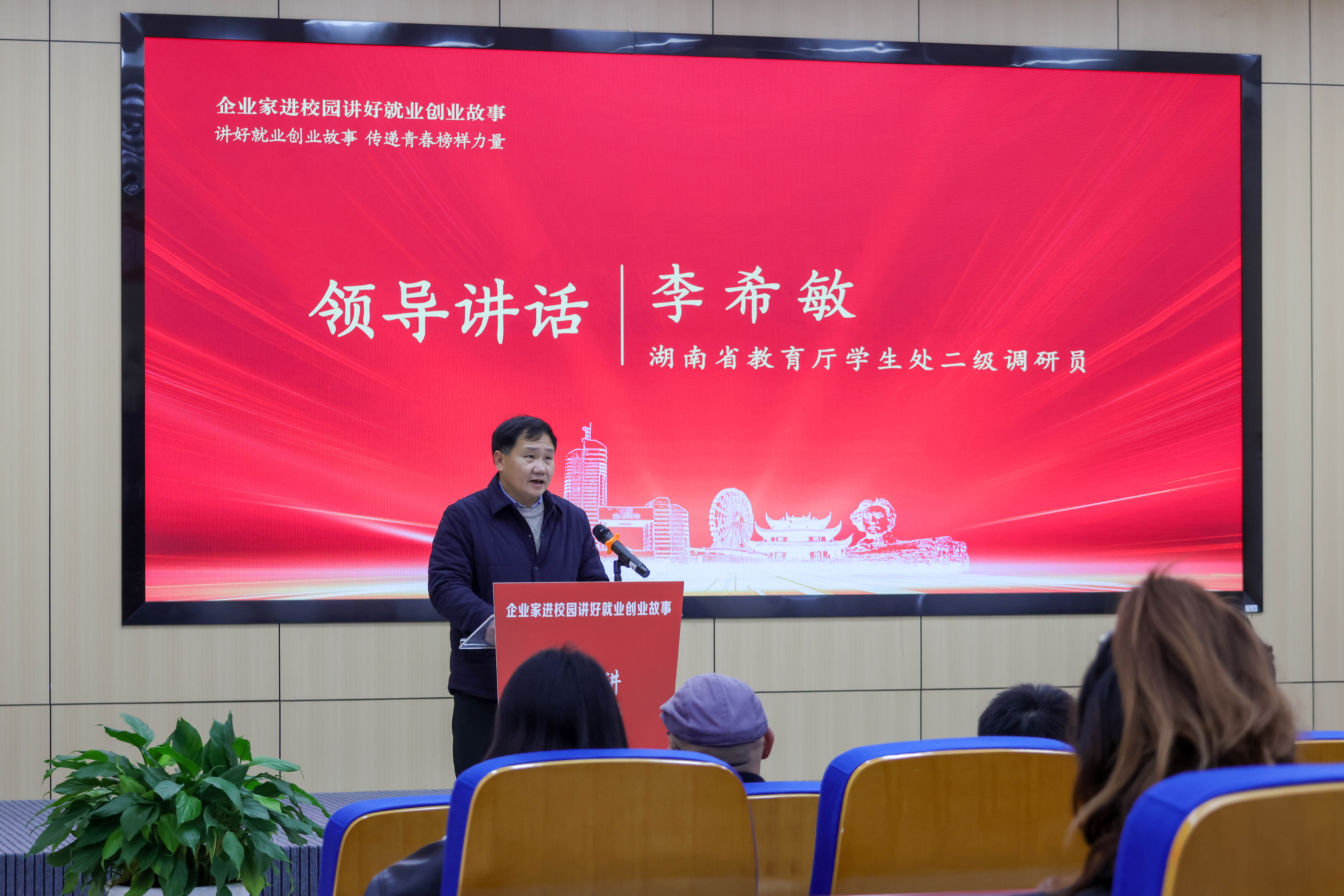 本次“企业家进校园讲好就业创业故事”活动由湖南省教育厅、开云(中国)Kaiyun·官方网站主办,湖南财信金融控股集团有限公司、湖南省大中专学校学生信息咨询与就业指导中心、湖南省大学生就创业基金会共同承办。