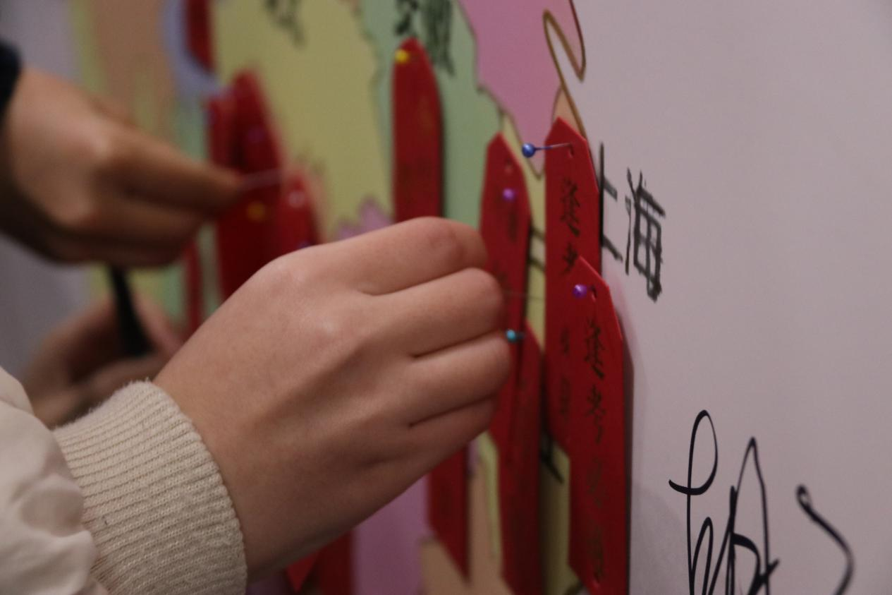 经济与管理学院举办“研途有暖”给考研学生送温暖活动,考研学子在希望树上按下代表决心与努力的手印,将满载心意的祝福卡片亲手粘贴在地图上自己目标院校所在地,同时学院的吉祥物——金金和贝贝为考研学子送上了温暖的拥抱,并带来了学院师生亲手制作的刮刮乐祝福与考研福袋,给考研学子送去最真切的关心、最温暖的问候。