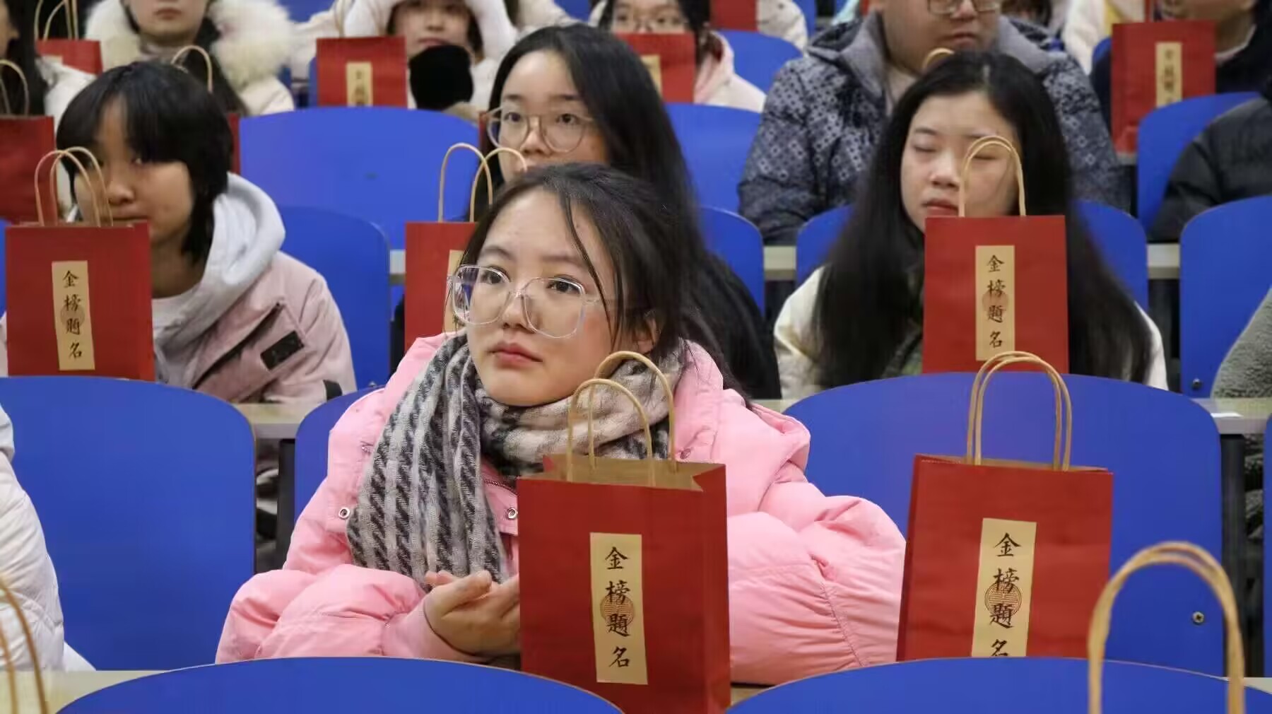 定制保温杯、暖贴、蒸汽眼罩和写满祝福的明信片……理学院用满满的仪式感为考研学子加油助威。同时召开考研加油会,为考研学生送上美好祝福,希望大家学有所成,研有所果。
