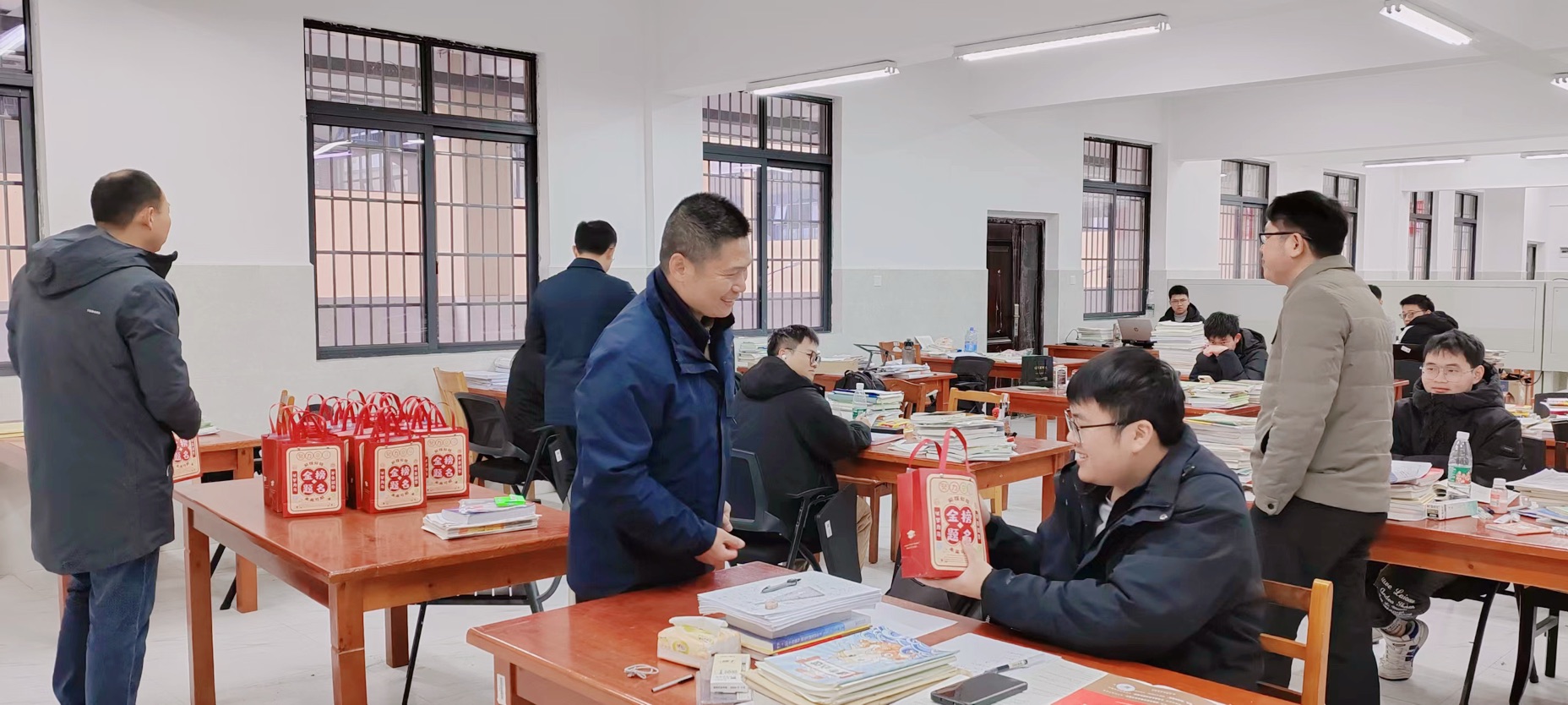 本网讯 “研”途星光灿烂,我们陪你上岸!”“学院给我们准备的礼物太用心啦!既实用、更暖心!”临近全国硕士研究生招生考试,各学院纷纷开展花式“送温暖”活动,帮助考研学子坚定备考信心、缓解压力。党委委员、副校长李常健、吴小林,各学院院长,党总支书记,辅导员来到考研教室,为考研学子加油打气,送去衷心祝福和温情关怀。