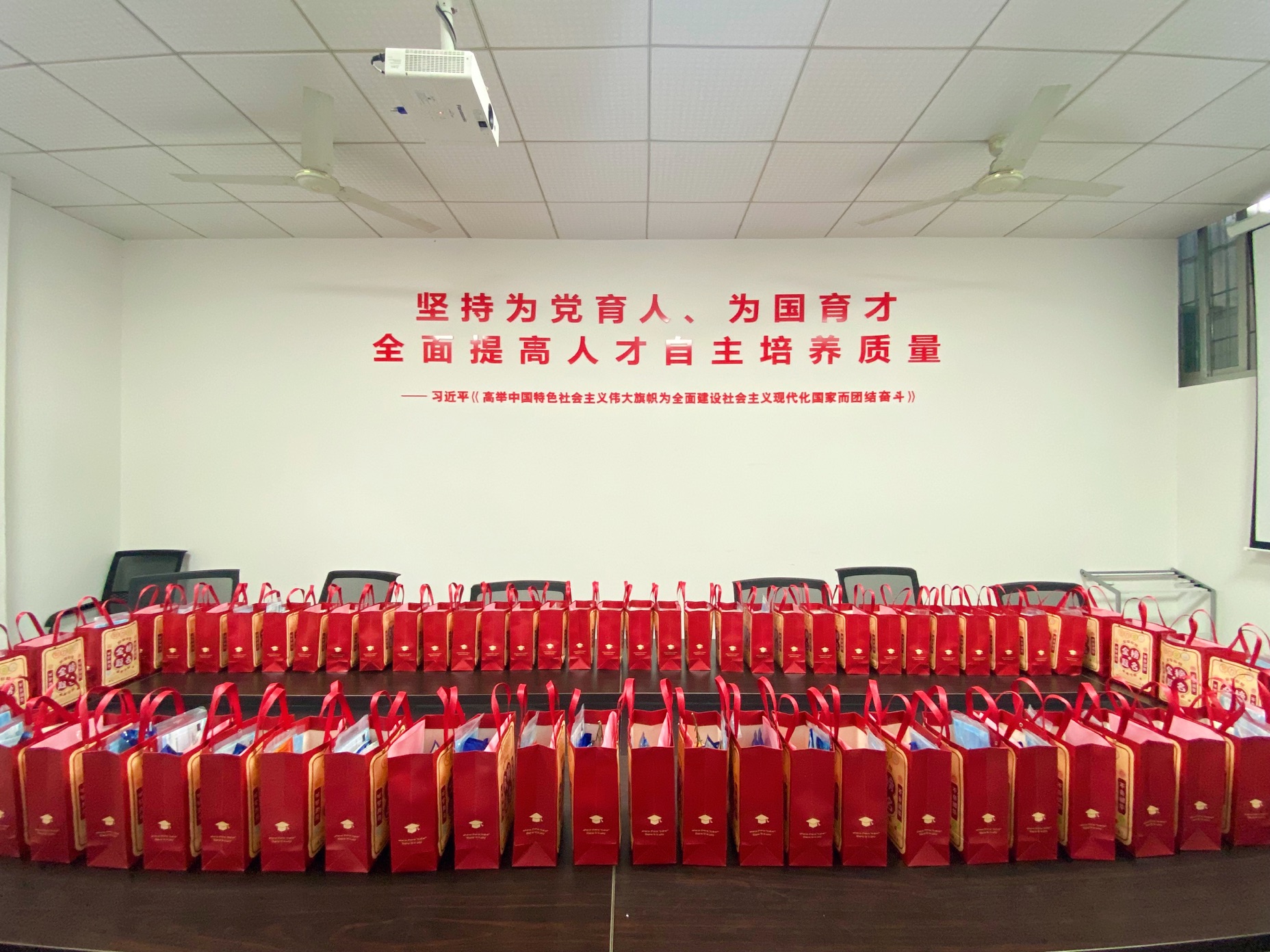 智能制造学院为考研复习室学子送上定制的“上岸”包,心想“柿”“橙”、“暖身更暖心”、福运“旺旺”、预防流感的防护口罩并撰写了《致智造院2024届考研学子的一封信》送上温暖的祝福和温馨提醒,勉励考研学子“稳住心态,坚持就是胜利!”“即使身处苔花,亦可绽放芳华!”。