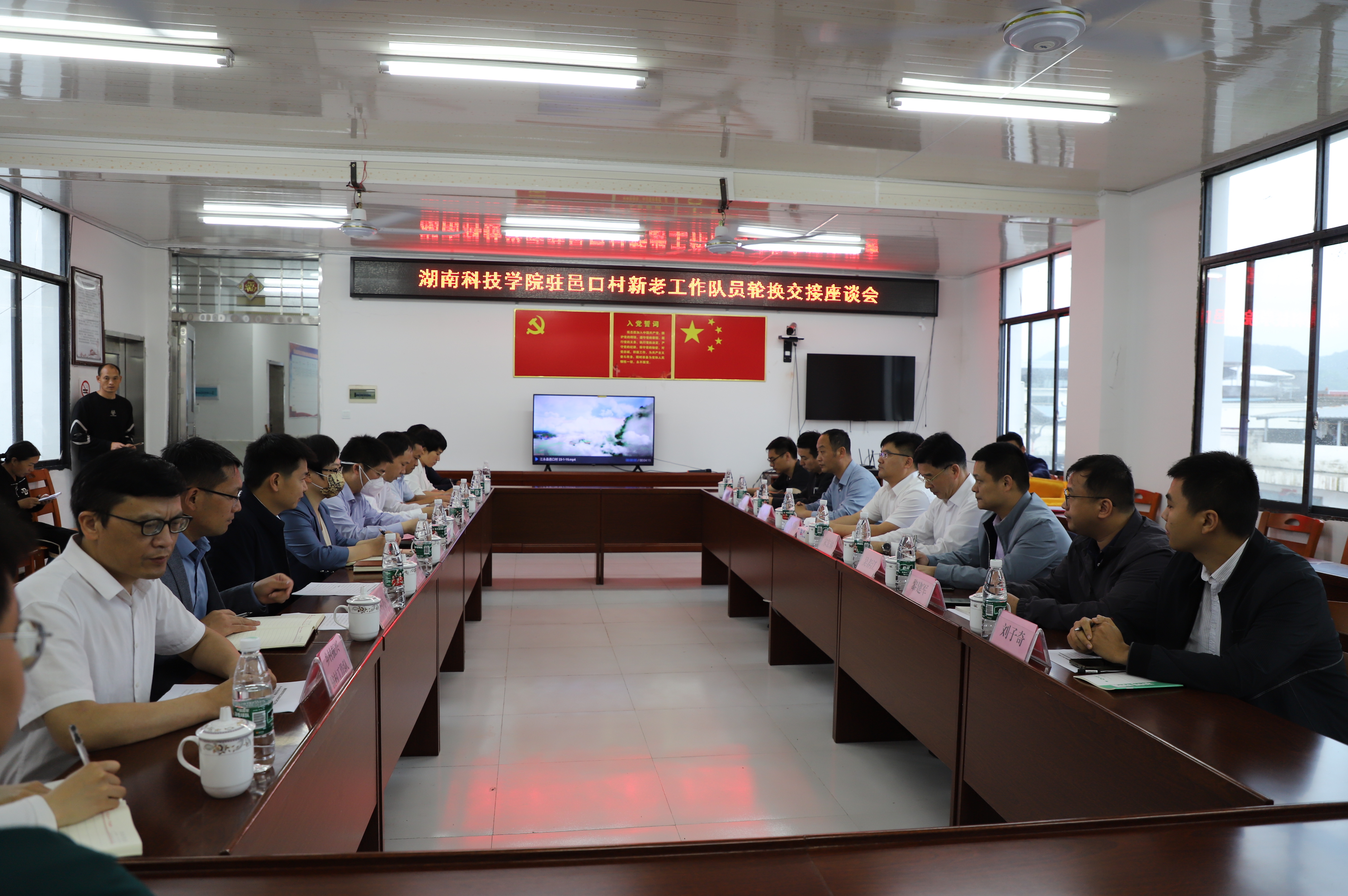 本网讯 5月22日,党委副书记、校长李钢,党委副书记宋宏福,党委委员、组织部部长杨涛将第二轮乡村振兴驻村工作队队员送至江永县桃川镇邑口村,并召开邑口村乡村振兴新老驻村队员交接会议。江永县委书记唐德荣, 县委常委、副县长杨敏, 县委常委、组织部长唐琼艳出席会议。