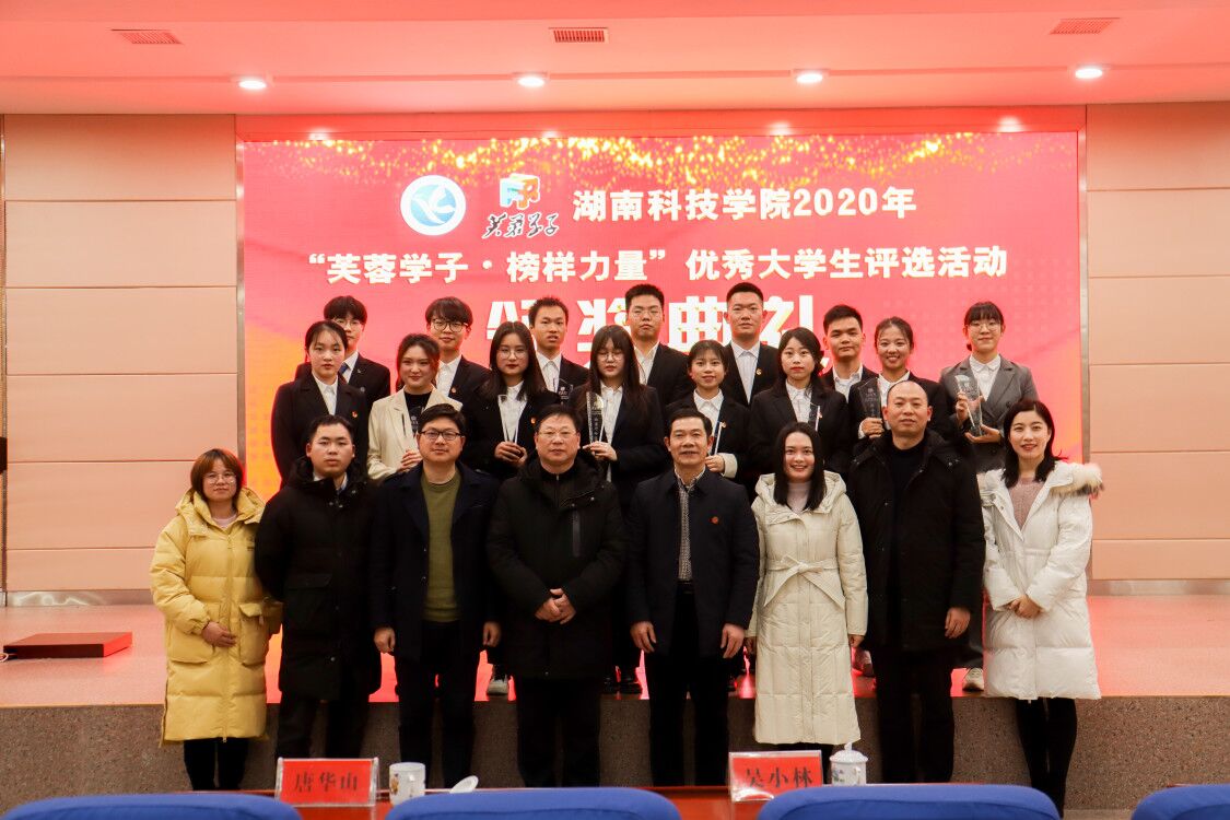 在此次线上线下评选中,共有10个团体和个人获奖。经济与管理学院朱铭、外国语学院“蚯基牛场——助农富强”团队获“芙蓉学子·社会实践奖”;人文与社会科学学院赵尹露、理学院曾黎明获“芙蓉学子·自强不息奖”;音乐与舞蹈学院范江涛、传媒学院田榆婕获“芙蓉学子·公益行动奖”;外国语学院胡迪凡、经济与管理学院欧阳萱获“芙蓉学子· 道德风尚奖”;化学与生物工程学院“搏智”团队、土木与环境工程学院“锦绣潇湘”团队获“芙蓉学子·学术科研奖”。