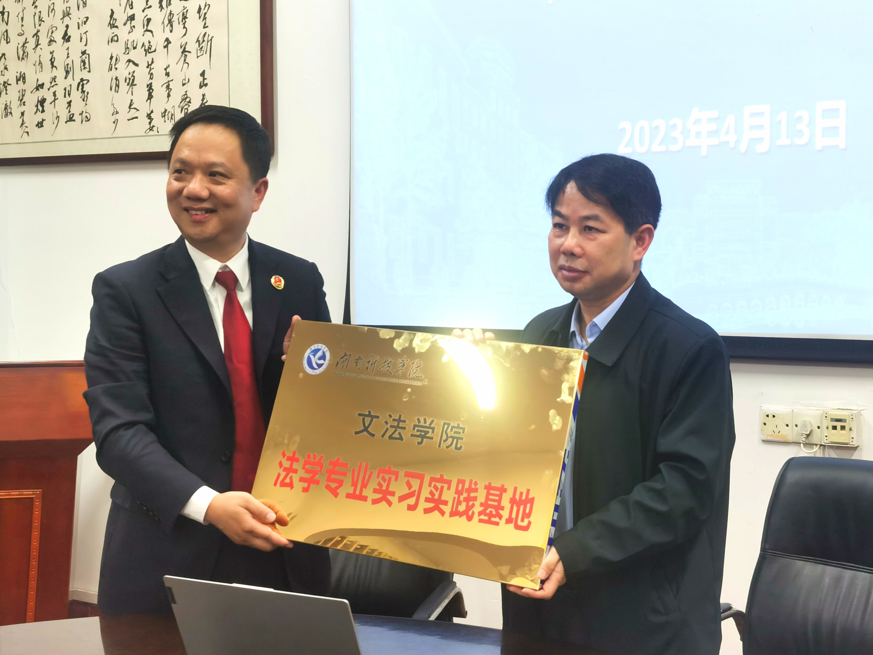 双方代表签署了《检校合作协议》,并分别为法学专业实习实践基地、永州市人民检察院检察理论研究基地授牌。