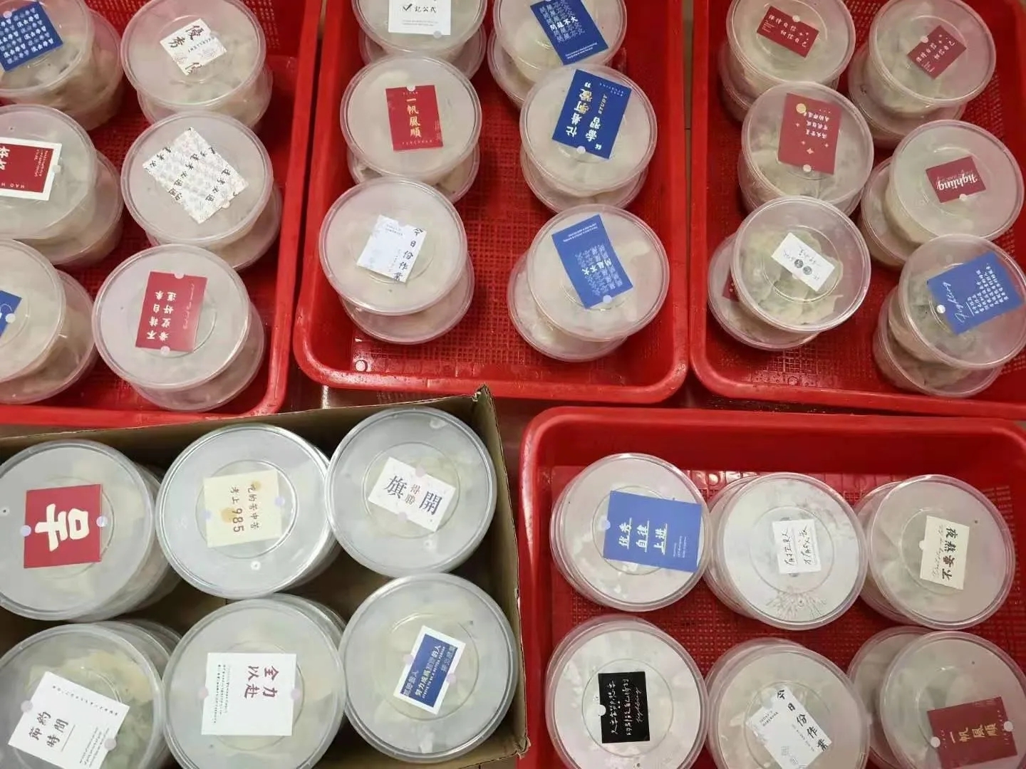 这份暖心饺子和姜汤,由后勤服务总公司和校团委的学生志愿者们参与制作,“吃饺子,成‘骄子’,希望能给学长学姐们带来满满的好运气!”“学习很苦,坚持很酷,加油!”小巧可爱的元宝饺、精巧别致的月牙饺、玲珑饱满的三角饺......大家纷纷使出绝活,将自己的祝福寄于所包的饺子中。