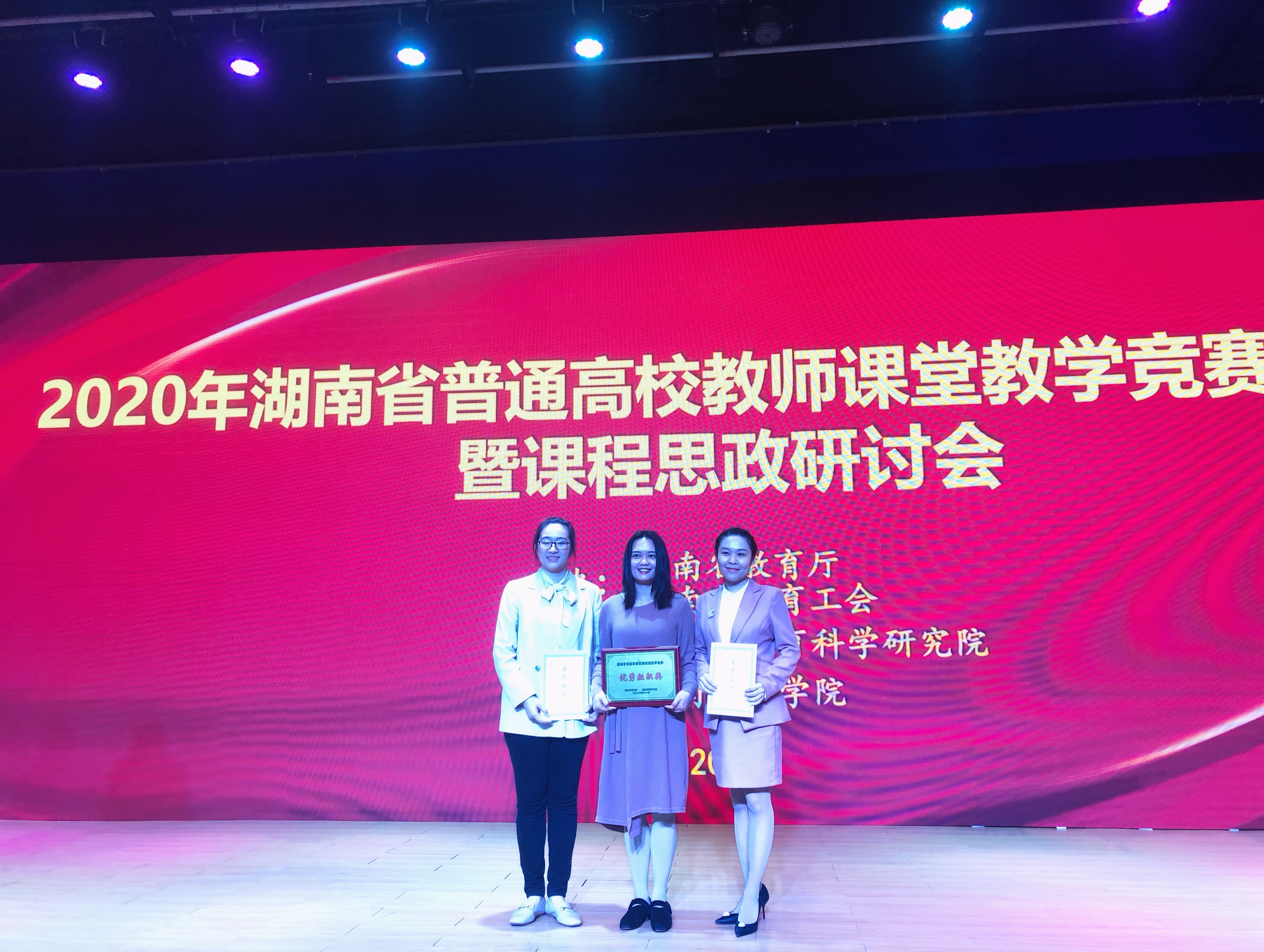 本网讯(通讯员 郭宜娟 代军垒)日前,2020年湖南省高校教师课堂教学竞赛落下帷幕。经过激烈的角逐,我校电子与信息工程学院杨钰老师、外国语学院黄警慧老师脱颖而出,荣获一等奖。学校被授予“优秀组织奖”。