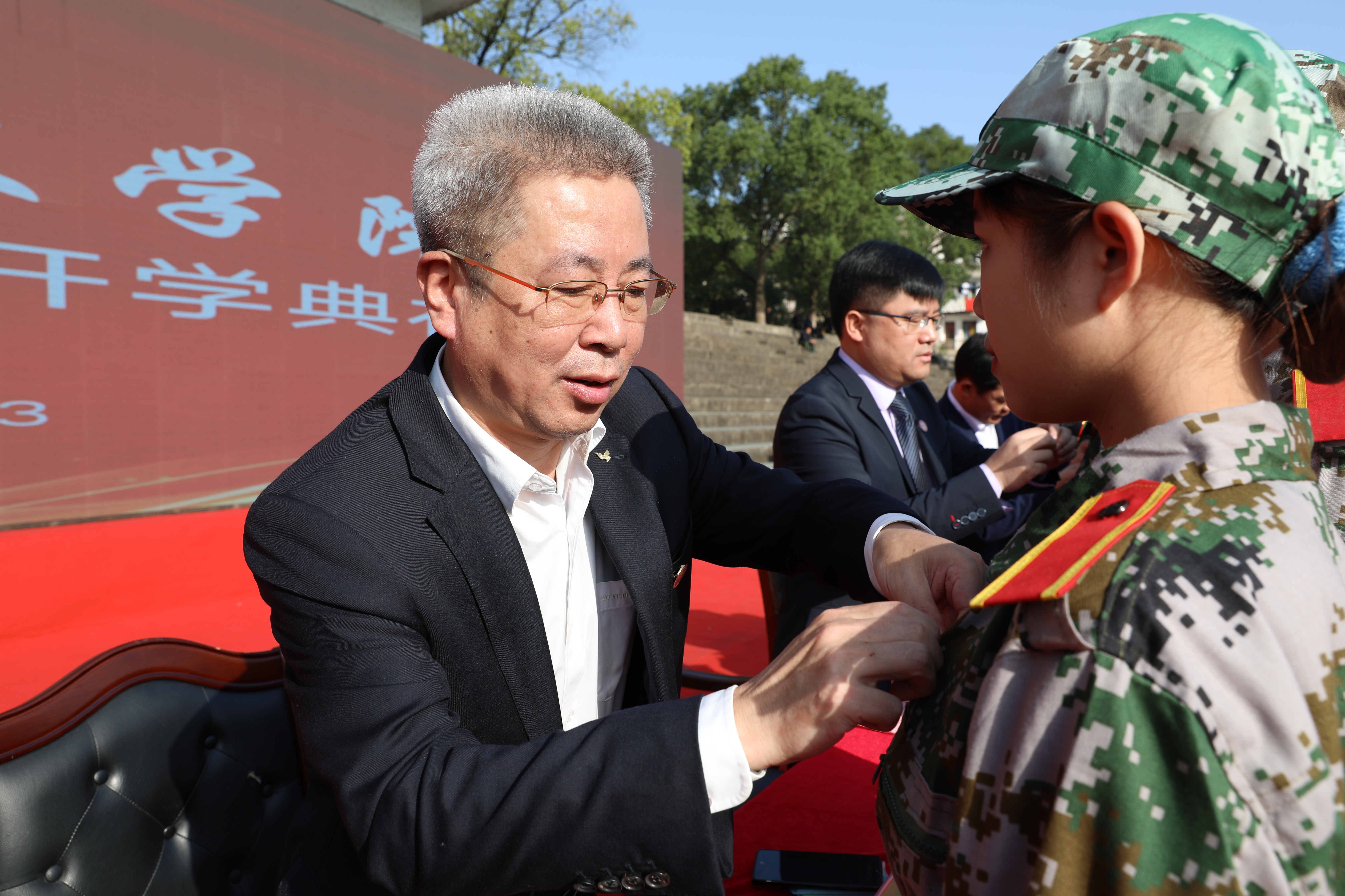 开学典礼上,全体校党委委员为新生佩戴校徽,2020级新生代表面向开云(中国)Kaiyun·官方网站校旗作《放飞梦想》的宣誓。