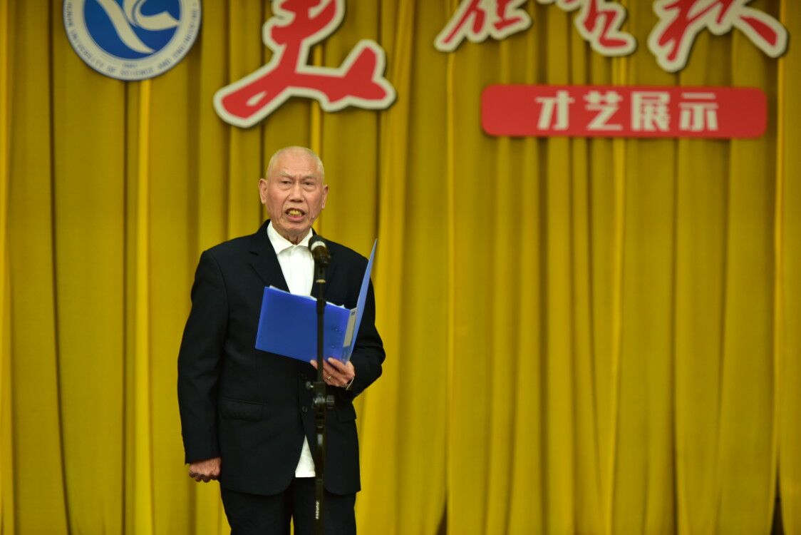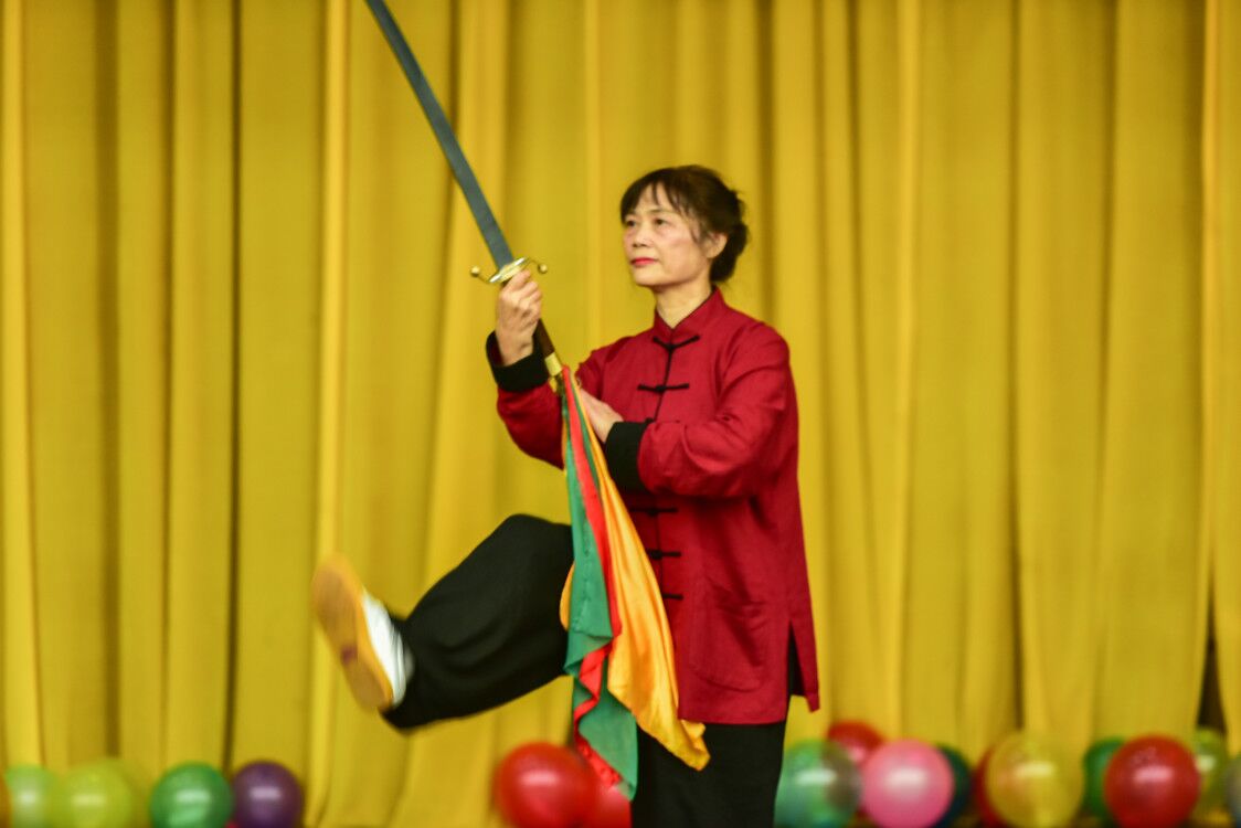 由李曼玲等离退休同志表演的舞蹈《欢聚一堂》将活动拉开序幕。在唐禹老师秦琴伴奏下,欧小松、唐朝继现场展示书法,为老同志们送上节日祝语;刘震老师深情朗诵了《感恩颂歌-对中国抗击新冠疫情之胜利有感》,表达了对祖国无限热爱之情、对抗疫英雄的敬仰之情!李其顺等老同志的独唱情感至深;王四娥太极刀表演豪迈奔放。老同志们各展才艺,庆祝活动现场气氛热烈,掌声阵阵。