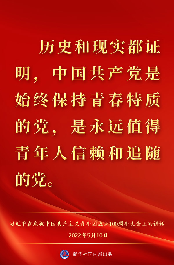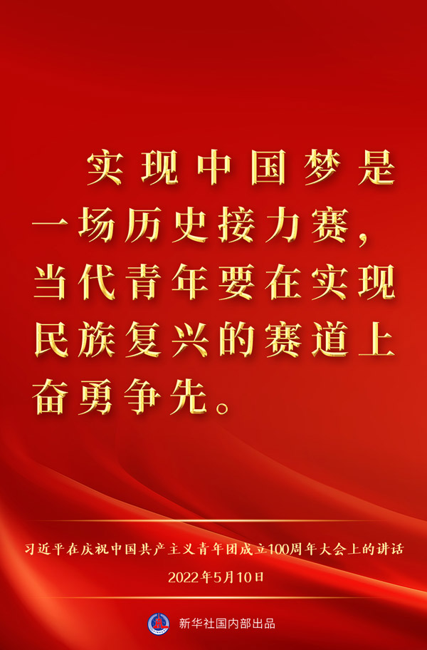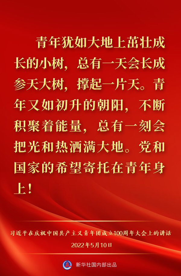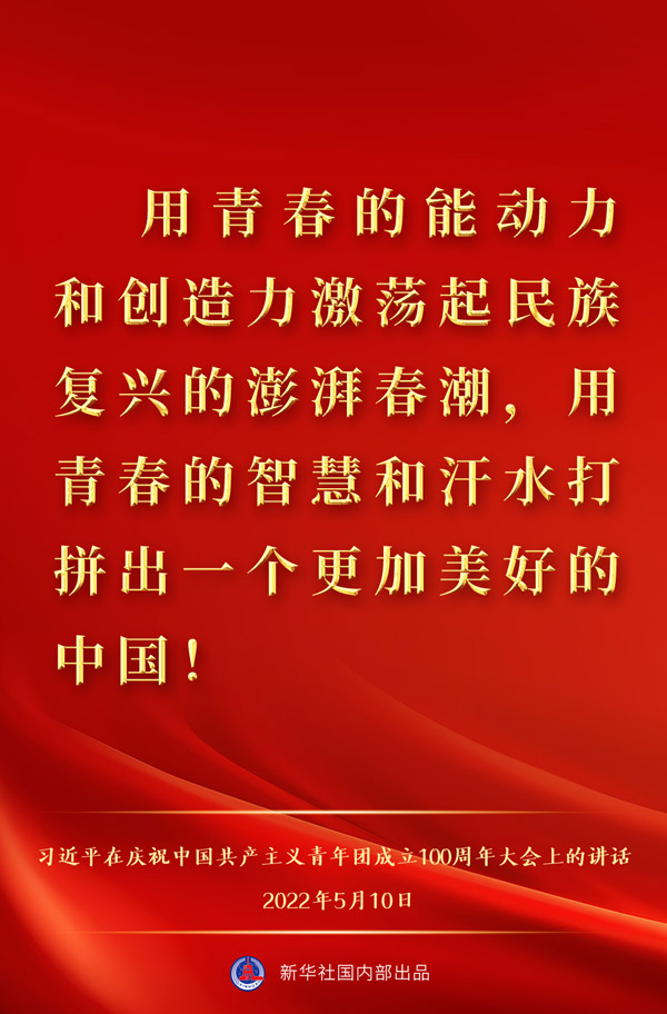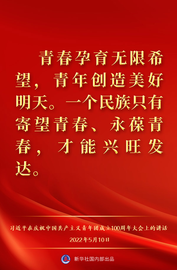 5月10日上午,中共中央总书记、国家主席、中央军委主席习近平出席庆祝中国共产主义青年团成立100周年大会并发表重要讲话,一起来看金句。