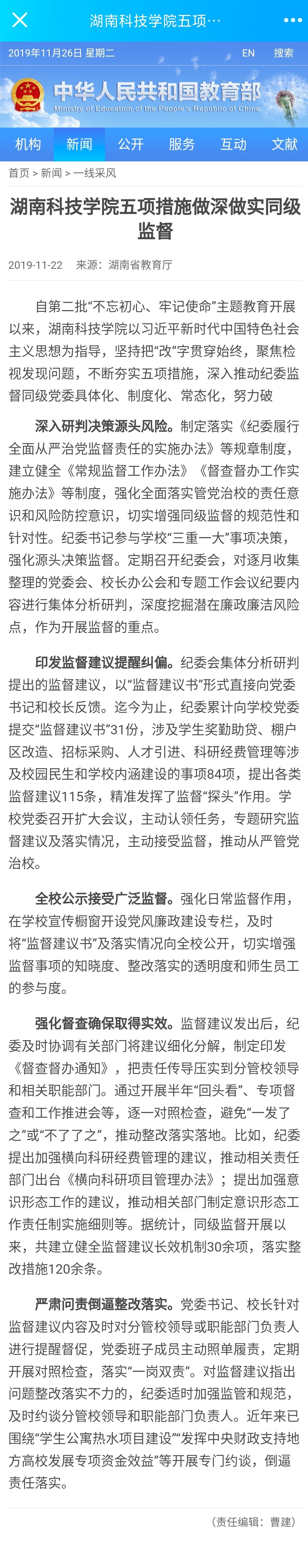 本网讯 11月22日,教育部官网以“开云(中国)Kaiyun·官方网站五项措施做深做实同级监督”为题,推介我校做深做实同级监督工作经验。