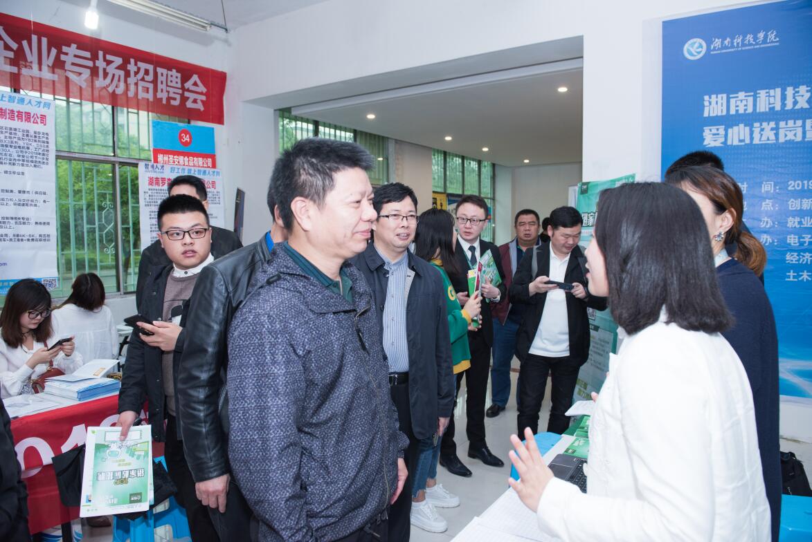 本网讯 4月29日,学校举办2019届毕业生爱心送岗暨校友企业专场招聘会。此次招聘会共吸引省内外88家用人单位参会,其中校友企业17家,提供就业岗位2100余个,副校长程智开来到现场与用人单位和毕业生进行交流。