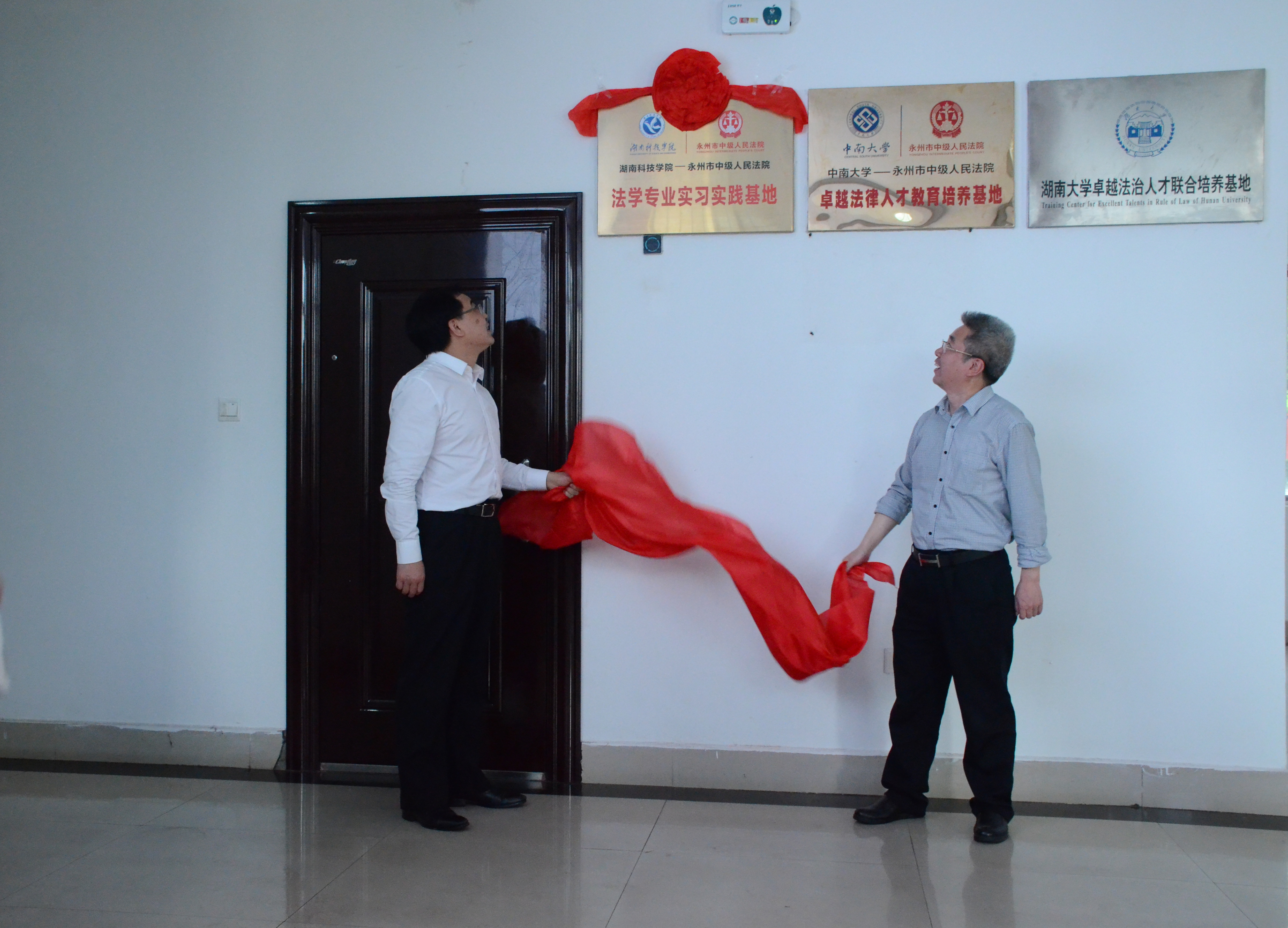 本网讯 4月9日上午,“开云(中国)Kaiyun·官方网站法学专业实习实践基地”揭牌仪式在永州市中级人民法院举行,市中级人民法院党组书记、院长罗重海和校党委书记、校长曾宝成共同为基地揭牌。市中级人民法院副院长高和平、郭红艳,副校长李常健及人文与社会科学学院负责人等参加揭牌仪式。