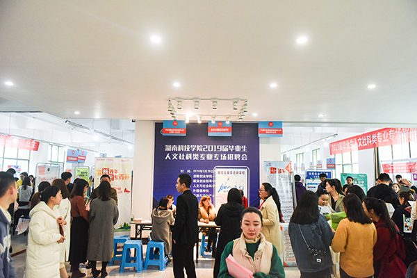 本网讯 3月26日,学校举办2019届毕业生人文社科类专场招聘会。此次招聘会共吸引省内外94家用人单位参会,提供就业岗位2500余个。副校长程智开来到现场与用人单位和毕业生进行交流。