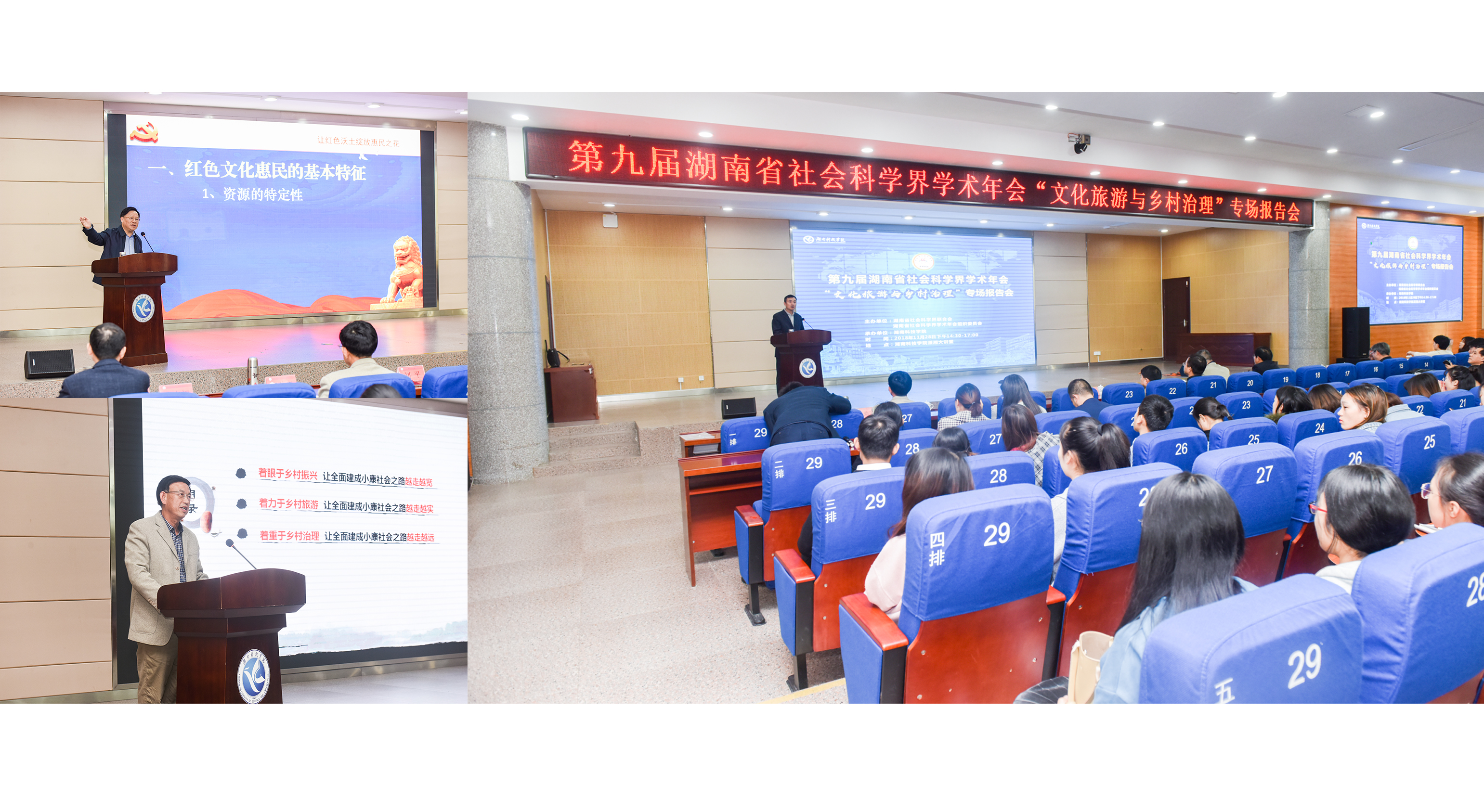 本网讯 11月28日下午,第九届湖南省社会科学界学术年会“文化旅游与乡村治理”专场报告会在学校举行。报告会由省政府参事、省委党史研究室原主任、省委宣传部原副部长张志初和省民政厅原巡视员、省社会组织党工委副书记李劲夫主讲。省社科联党组成员、副主席胡卫箭主持报告会。校党委书记陈弘,副校长宋宏福、李常健,省、市社科联相关领导,永州市县区党校学员代表以及学校师生代表800余人参加。