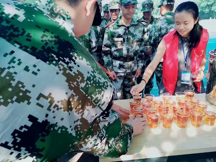 “军训期间爱心服务社的前辈们在田径场不同位置设点,给在军训的我们送凉茶。那时候天特别热,他们在炎热的天气里利用课余时间为我们煮好凉茶,虽然因为精力有限,不能把凉茶送到每一个军训新生的手里,但拿到凉茶的同学都很感激。”徐沙沙提到,他们的脸上洋溢着帮助到人的快乐,这笑容是最感染人的。也正是因为这样,她被吸引加入到了这个有爱的社团。
