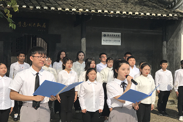 11月初,学校组织100余名学子赴我校爱国主义教育基地——李达故居参观学习,了解了李达同志的革命历史。随后,学子们在李达故居前饱含深情地集体诵读《从南湖到北湖》、《纪念李达同志》和《七律.咏一大代表李达》等红色经典诗文。通过红色经典朗诵活动,同学们重温革命先辈的英雄事迹,加深了对红色革命文化的深刻认识,激发了爱党爱国精神,用青春激情拥抱新时代。
