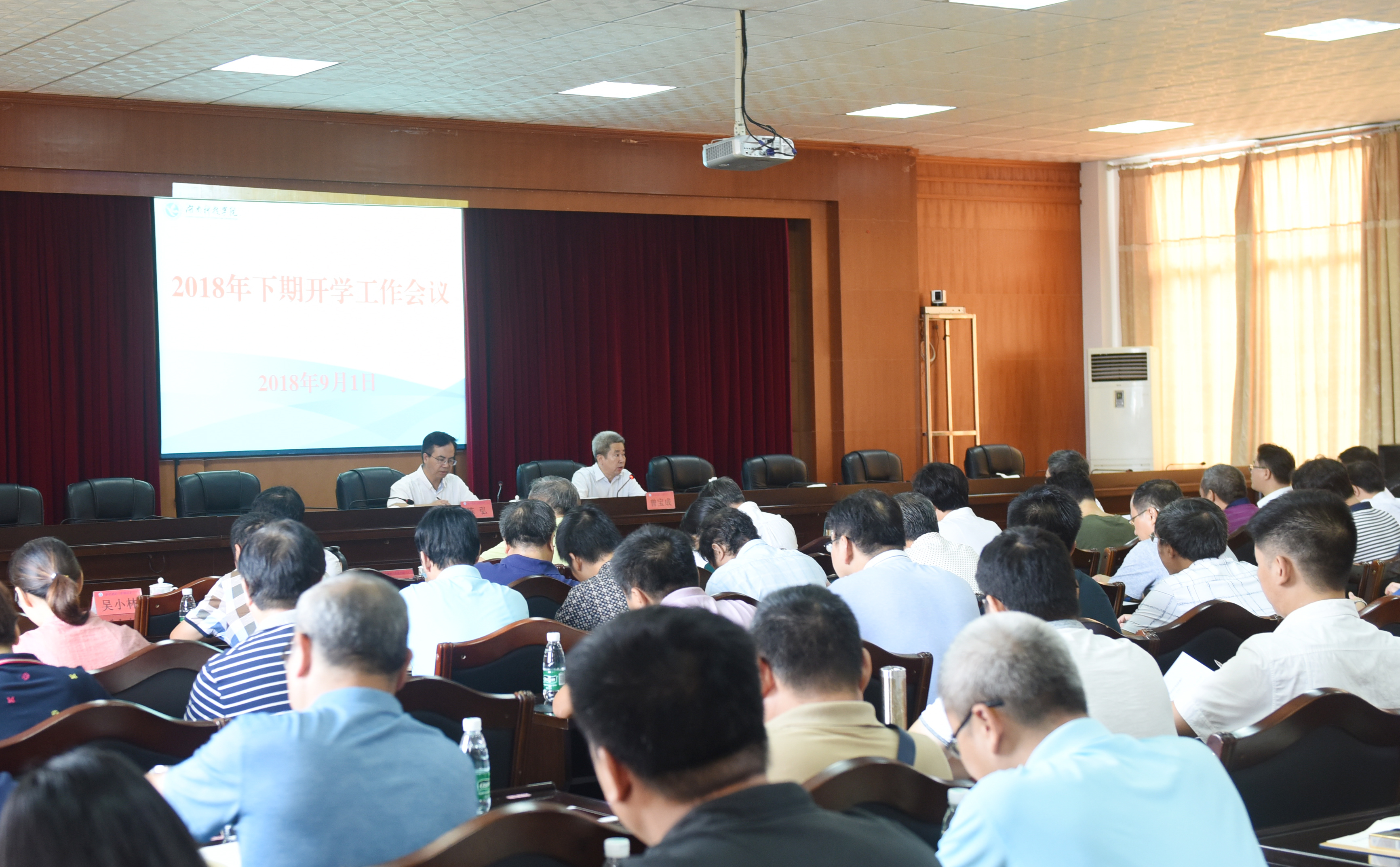 本网讯 9月1日上午,学校召开2018年下学期开学工作会议。全体校领导以及中层干部参加会议,校党委书记陈弘主持会议。