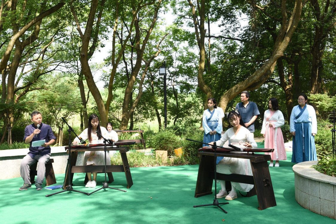 本网讯  5月19日,“冷水滩5.19中国旅游日”活动在冷水滩蔡市镇邓家铺村潇湘文化园举行。国学院九疑古琴社师生欧阳平彪、屈梦君、刘思捷、邱玲等人演唱了琴歌《湘妃思舜》和琴箫合奏《阳关三叠》,向大众展演了九疑古琴派的独特风采,赢得了大家的一致喝彩。