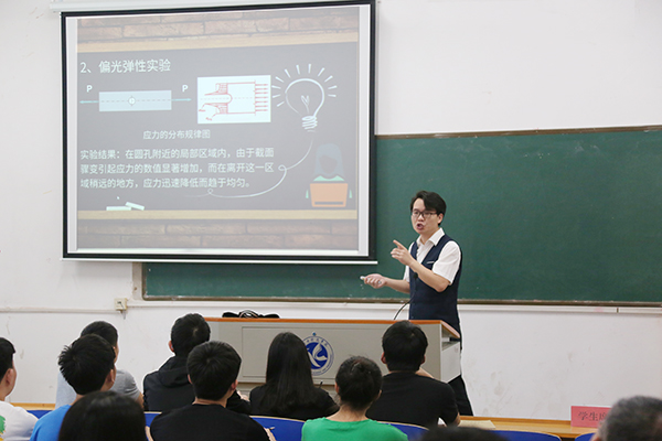 比赛分理工科组和文科组,两组同时进行。在比赛过程中,各位参赛教师激情饱满,热情四溢,教学风格各具特色。比赛最终结果由现场授课与教学文档两部分综合评比产生。在现场授课环节比拼中,罗雄文老师以“土木工程材料”为课题授课,用赵州桥的例子引出学生对桥梁构造的探讨,借粉笔、弹簧等实物举例,结合示意图让学生更清晰地了解钢筋与混泥土的协同作用。李超老师他从打开口腔、力量集中、声挂前腭三点,结合绕口令、视频和例子具体分析了播音中咬字器官互相配合的要领,以良好的教学仪态、诙谐幽默的教学语言,欢乐的课堂气氛为学生们讲解《发声与播音基础》的课程内容,课堂上充满了欢声笑语。