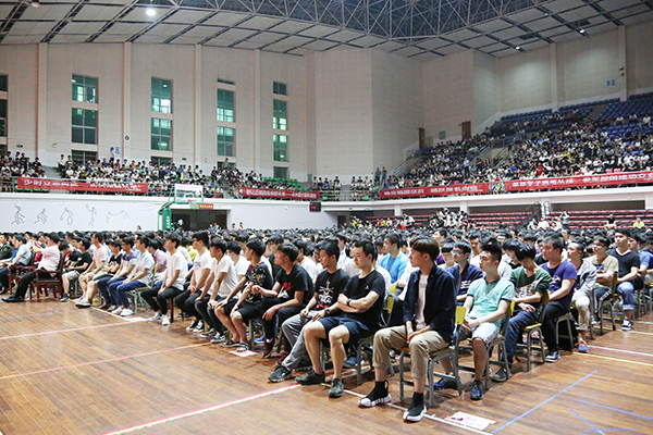 本网讯 4月3日晚,为贯彻落实习近平总书记强军思想以及4月3日上午在京召开的2018年全国大学生征兵工作网络视频会议精神,学校组织4000余名适龄男青年举行国防教育暨征兵宣传动员大会。零陵区武装部部长王建武作征兵宣传动员工作报告,副校长程智开出席。