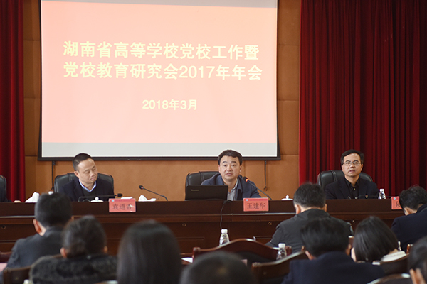 省高校教育研究会会长、湖南师范大学党校常务副校长袁道香作研究会2017年工作报告,回顾了过去一年的工作并提出了2018年工作设想。