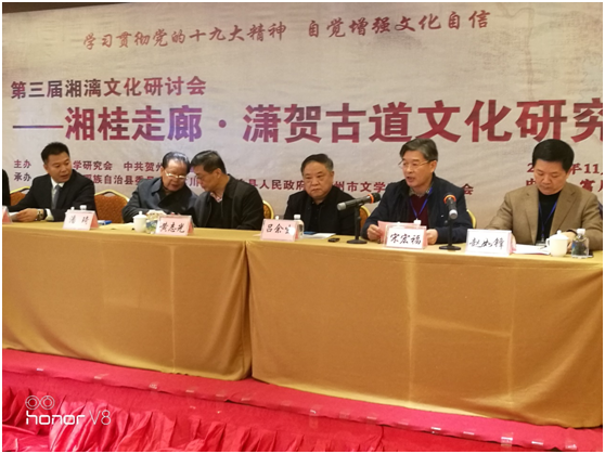 本网讯 11月23日至25日,第三届湘漓文化研讨会——湘桂走廊•潇贺古道文化研讨会在广西富川瑶族自治县举行。副校长宋宏福带队与永州市专家学者一行十四人与会,来自湘粤桂三省区的有关专家、学者共80余人参加会议。