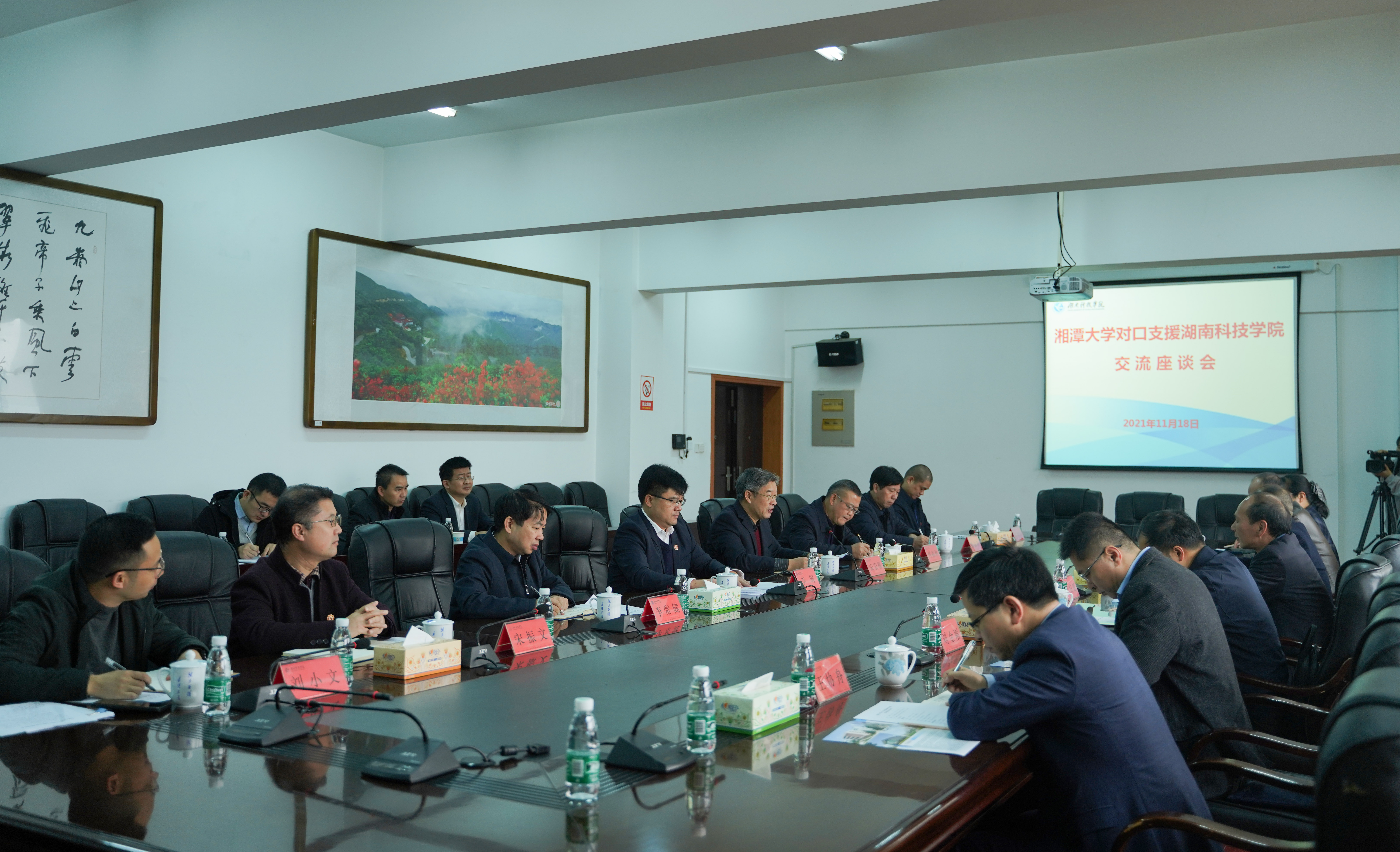 宋宏福简要介绍了我校的办学历史、办学规模、师资力量、学科专业建设等情况。他表示,两校渊源深厚,亲如一家,希望进一步推进与湘潭大学的交流与合作,促进我校更好、更快地发展。