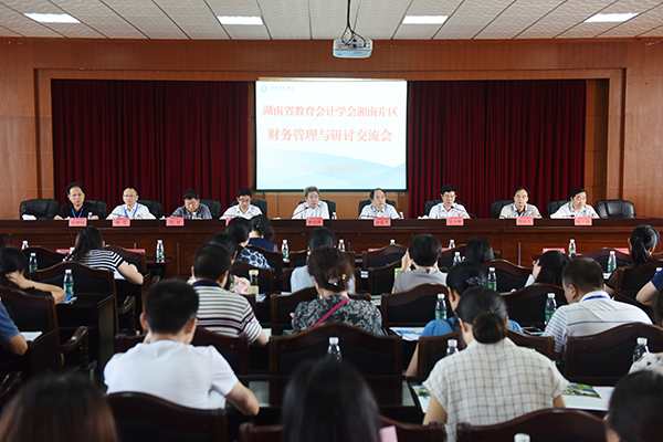 本网讯 7月8日,湖南省教育会计学会湘南片区财务管理培训暨研讨交流会在我校举行。校长曾宝成,湖南省教育厅财建处温佐望、湖南省教育会计学会湘南片区会长周晓东、湖南农业大学计划财务处处长徐琳及片组高校的相关财务负责人参加了会议。会议由我校党委委员、副校长吴小林主持。