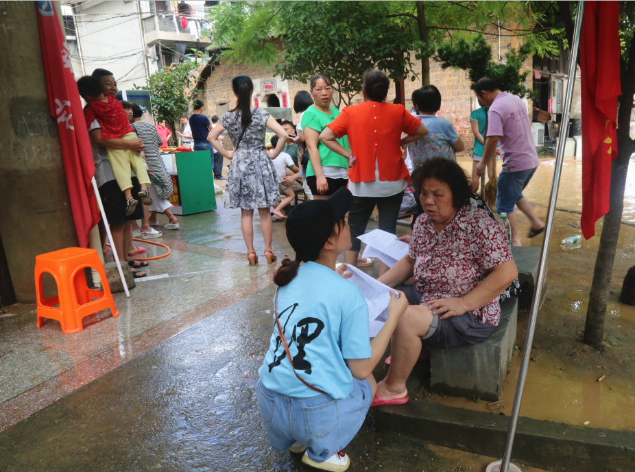 他们是那样认真、那样积极、那样卖力。汗水浸湿了衣衫,泥巴裹满裤脚、手掌磨出血泡,但他们毫不在乎,脸上始终洋溢着笑容。在古稀老人邓奶奶的家里,志愿者们组成积水搬运队伍,将老奶奶房间里一尺深的积水一勺一勺,用桶接力清理干净。邓奶奶对志愿者们的付出表示感动,他举起大拇指说,这些孩子真好。在留守老人王奶奶的家里,志愿者们为她家清洗地板、桌椅、被单,了解老人生活现状,告诉老人洪灾过后疾病预防知识。