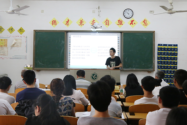 本网讯 5月20日,学校对2017届本科生毕业论文(设计)进行校级抽样答辩。参加本次校级抽样答辩的有来自全校17个专业的99名学生,分四组进行。校工会主席、副校级督导员陈仲庚出席答辩会。