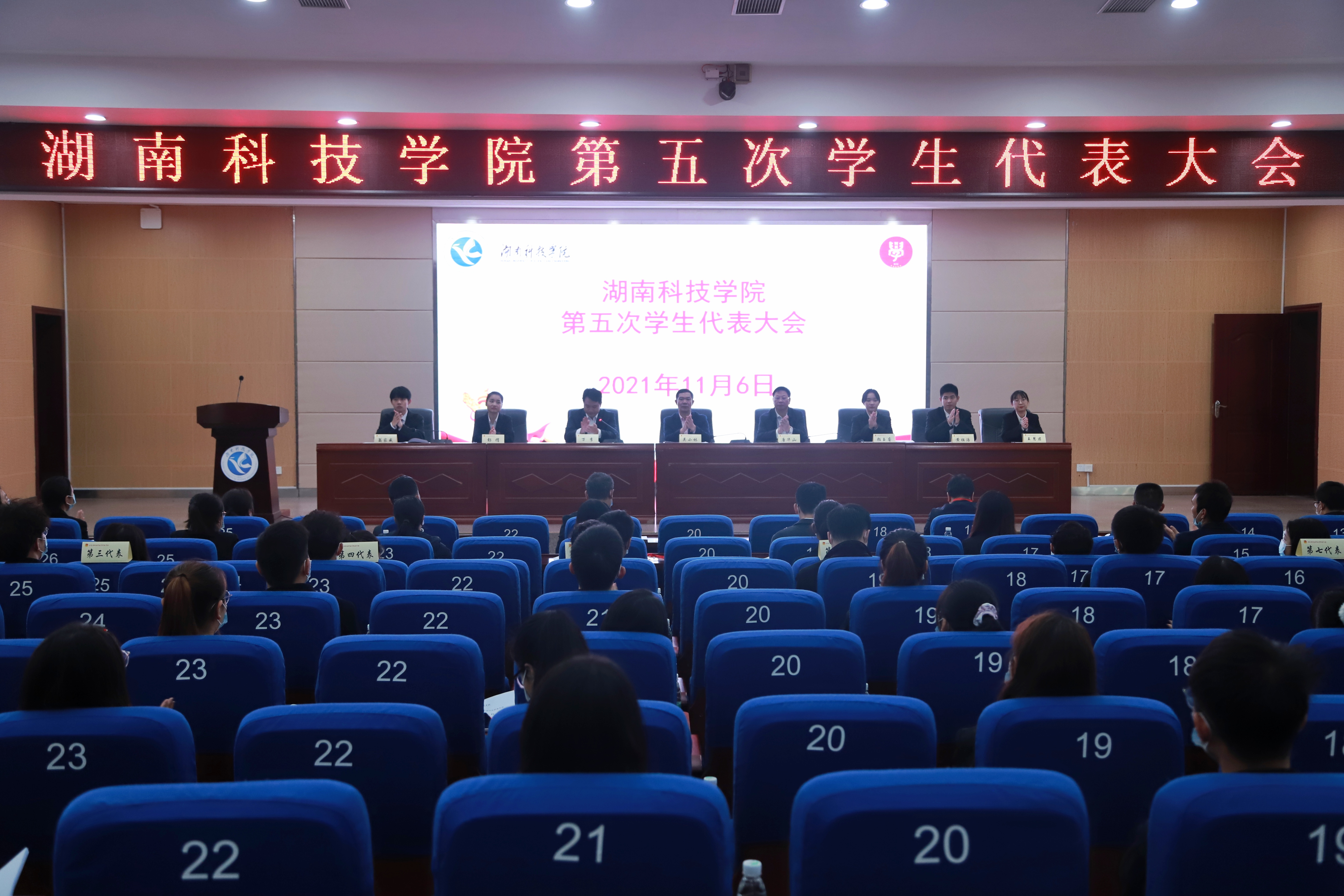 本网讯(记者 梁蒋宇)11月6日,我校第五次学生代表大会在潇湘大讲堂召开。校党委委员、副校长吴小林,党委学生工作部部长唐华山,团委书记万李出席会议。会议由万李主持。