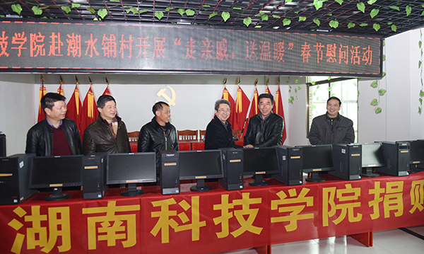 当日上午,曾宝成和学校党委副书记唐艳明,副校长吴小林、程智开,副校级督导、工会主席陈仲庚带领学校组织部、党政办、资产处、就业创业指导中心等部门负责人冒着细雨严寒走进扶贫村,进村入户为88户贫困户、6户五保户、村两委委员送去慰问金,并到结对贫困户、百岁老人家中送去慰问金和春联。为改善村委办公条件,现场还捐赠了办公电脑。