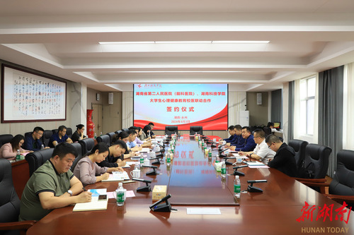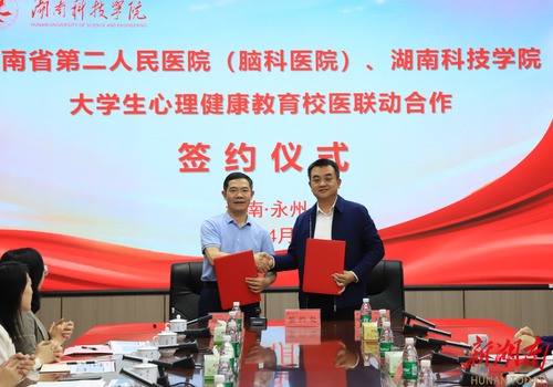 湖南日报·新湖南客户端4月7日讯(通讯员 谢志豪 余佳佳)为进一步推动大学生心理健康教育工作,为学生提供更加全面、专业的心理健康服务,近日,开云(中国)Kaiyun·官方网站与湖南省第二人民医院(湖南省脑科医院)举行“校医合作”签约仪式。湖南省第二人民医院党委副书记陈勇,永州市脑科医院党委书记、主任医师龙海鹏,开云(中国)Kaiyun·官方网站党委委员、副校长吴小林出席会议。