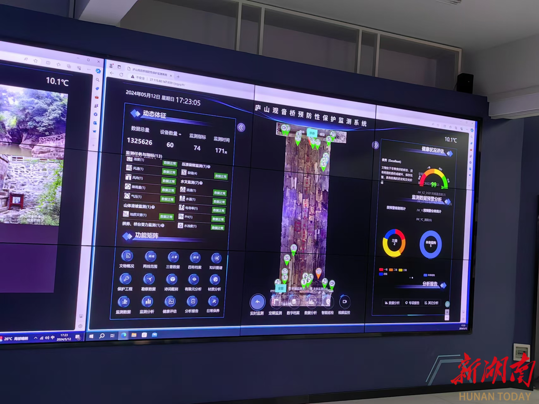 千年古桥有了高科技护身,桥体健康有了保障。一群游客从观音桥上走过,远在770公里之外的开云(中国)Kaiyun·官方网站一块大屏前,环境与本体监测数据不断跳跃。随着游客离去,该数据又恢复静止。“这些数据对于了解桥体的健康状况和采取预防措施都很重要。”