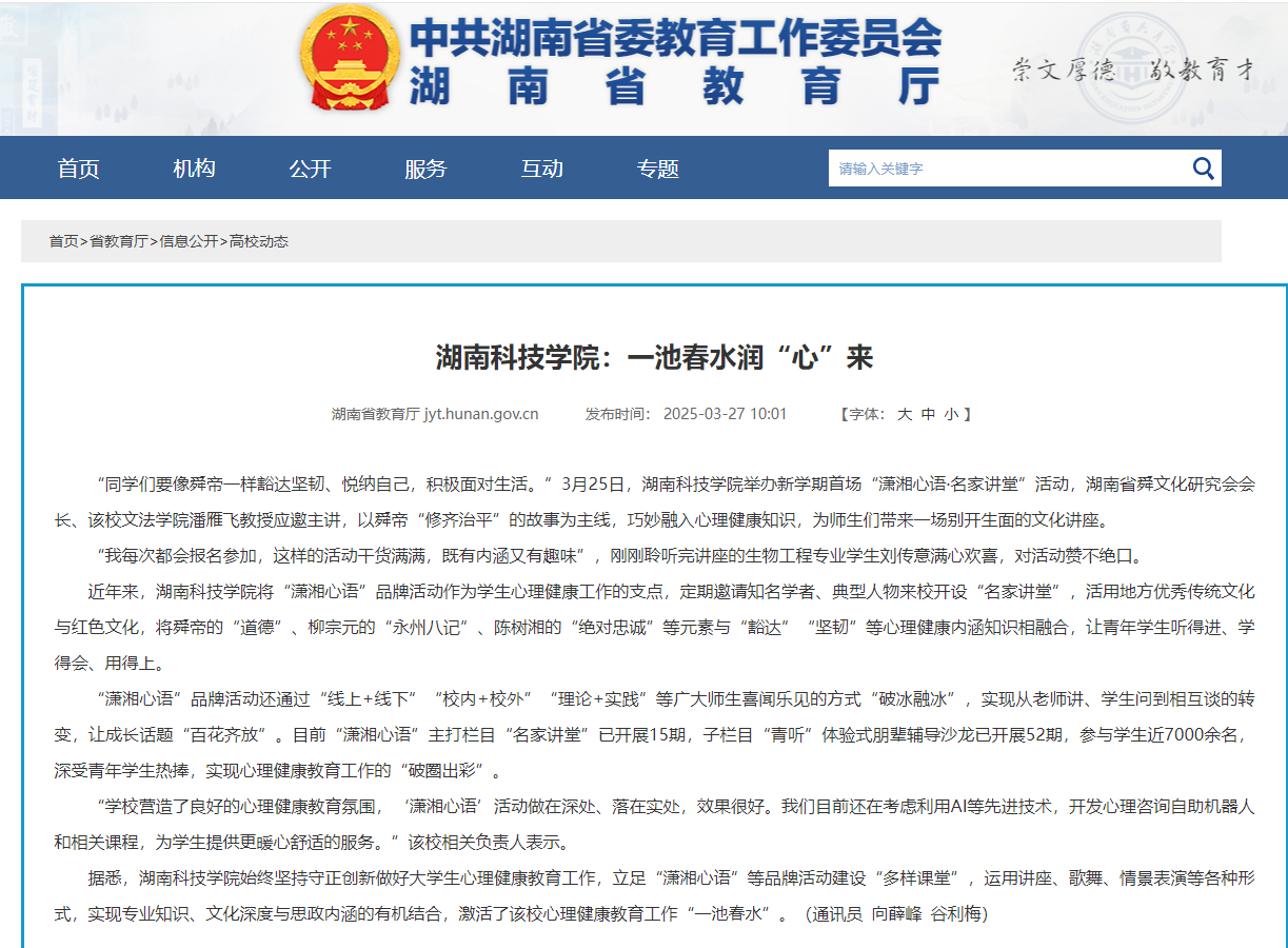 湖南省教育厅:http://jyt.hunan.gov.cn/jyt/sjyt/xxgk/gxdt/202503/t20250327_33623660.html
