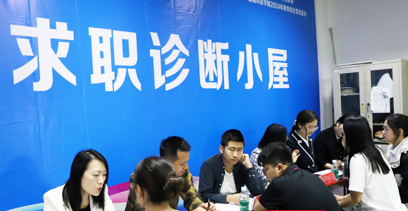 校园招聘会设置“求职诊断小屋”,现场为高校毕业生答疑解惑、指导修改简历