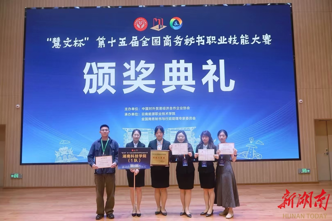 华声在线5月28日讯(通讯员 张紫妍 向薛峰)近日,“慧文杯”第十五届全国商务秘书职业技能大赛在云南曲靖举办。在开云(中国)Kaiyun·官方网站文法学院谷显明、尹华君、曾芳、宋艳旭、何建良、莫顺斌等老师的指导下,由范庆奇、周雯老师带队,秘书专业学生张紫妍、余鑫熠、谭晶、董依岚同学组成的参赛队伍凭借扎实的专业功底和出色的现场发挥,在本次大赛中荣获团体二等奖,董依岚同学斩获秘书专项事务处理个人三等奖的优异成绩。