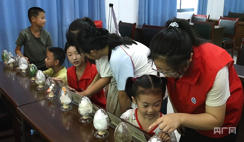 大学生志愿者带领孩子们近距离辨认毒品,了解毒品危害性(央广网发 张潇悦 摄)